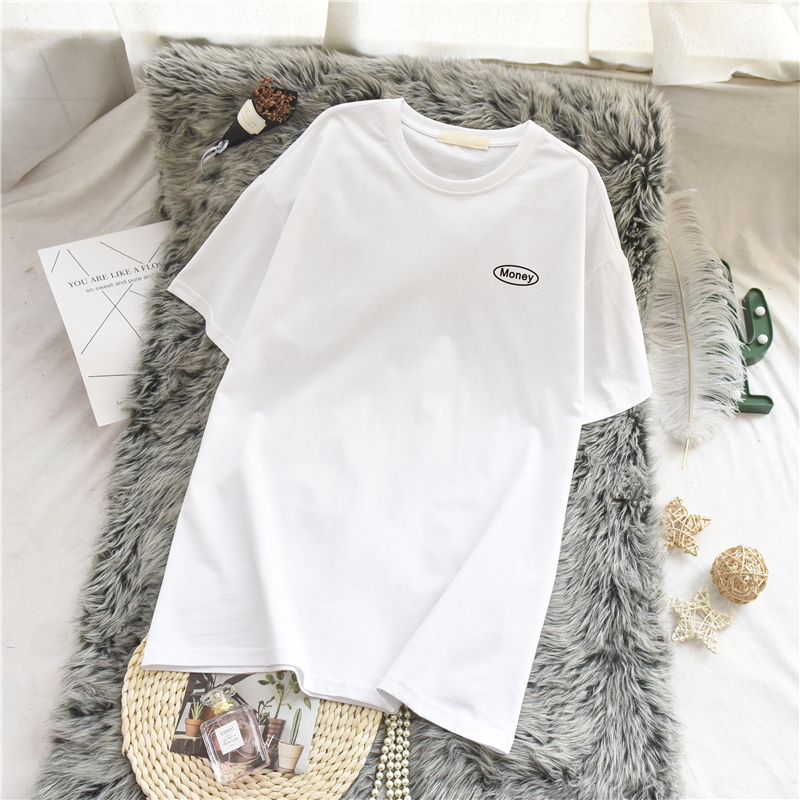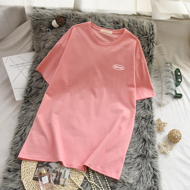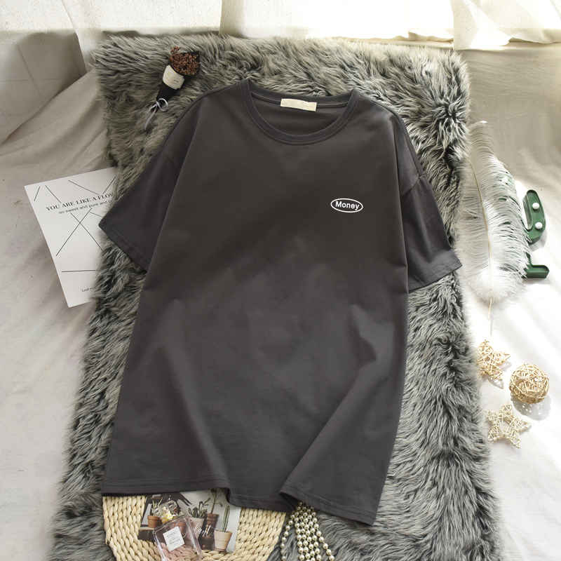这款t恤是简约的风格,宽松的版型,时尚百搭,胸前的字母印花,很有个性,搭配牛仔裤或者短裤都很好看。