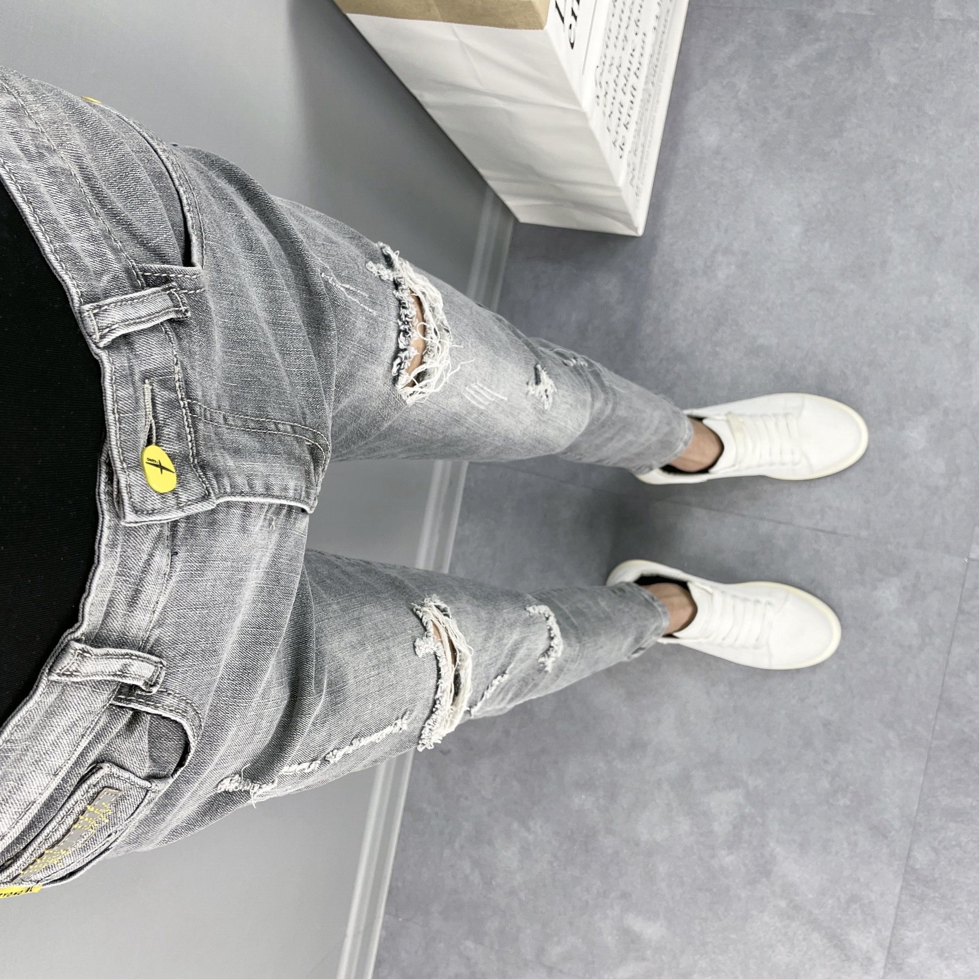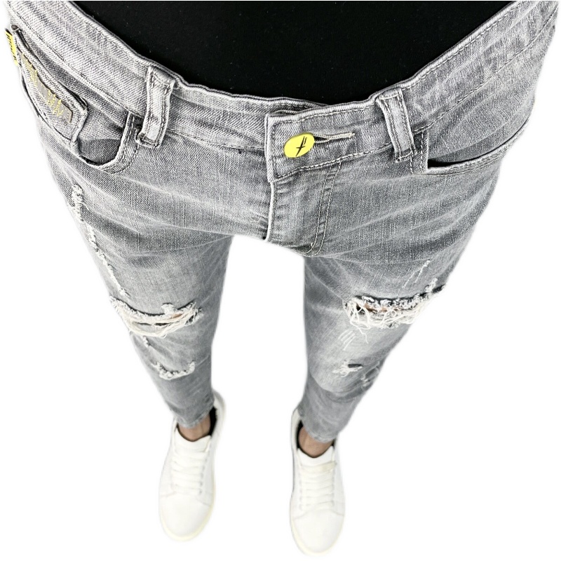 牛仔裤采用了经典的牛仔裤版型,穿着舒适自在,裤身的字母印花图案,让人眼前一亮,个性又时尚。