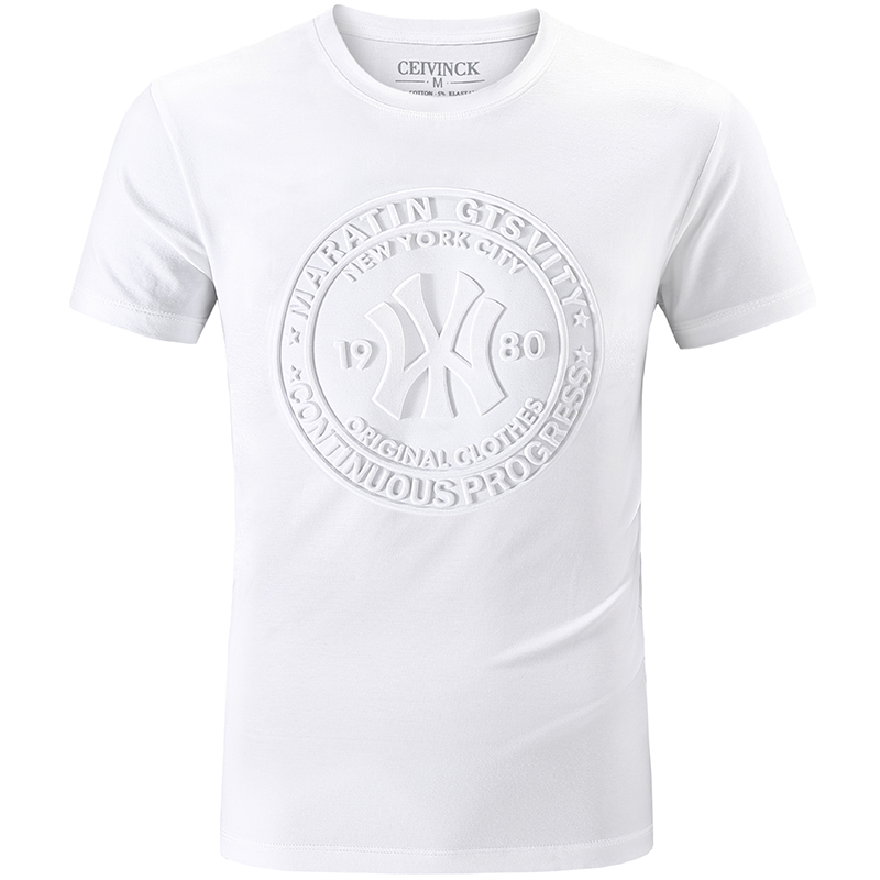 休闲潮范儿十足的一款圆领短袖上衣,简洁圆领设计,上身更贴合肌肤,胸前印花个性十足。