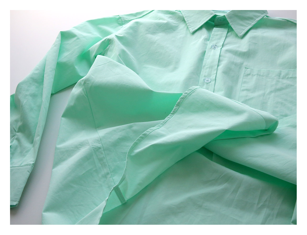 日系学院风的一款白衬衫,纯棉的材质,手感柔软,上身很舒服,小清新的颜色,很显气质。