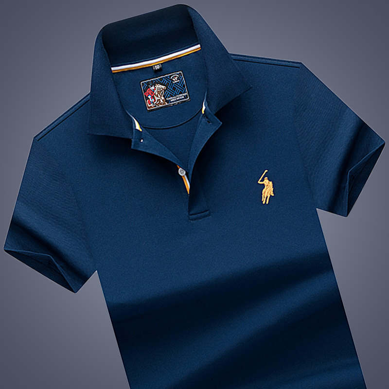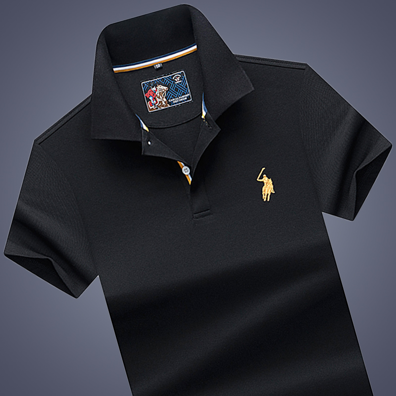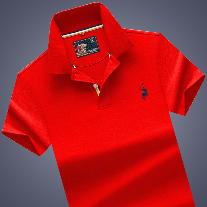 POLO领,男人味十足。衬衣翻领,修饰颈部线条。经典的polo衫版型,休闲时尚。
