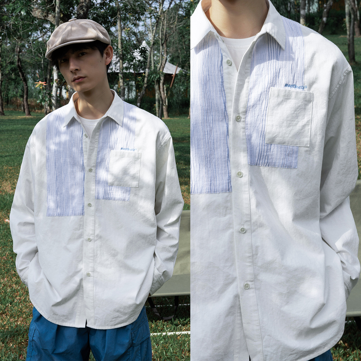 白色的色调,时尚又百搭,肌理分明,质地柔软舒适。翻领设计,修饰颈部线条。