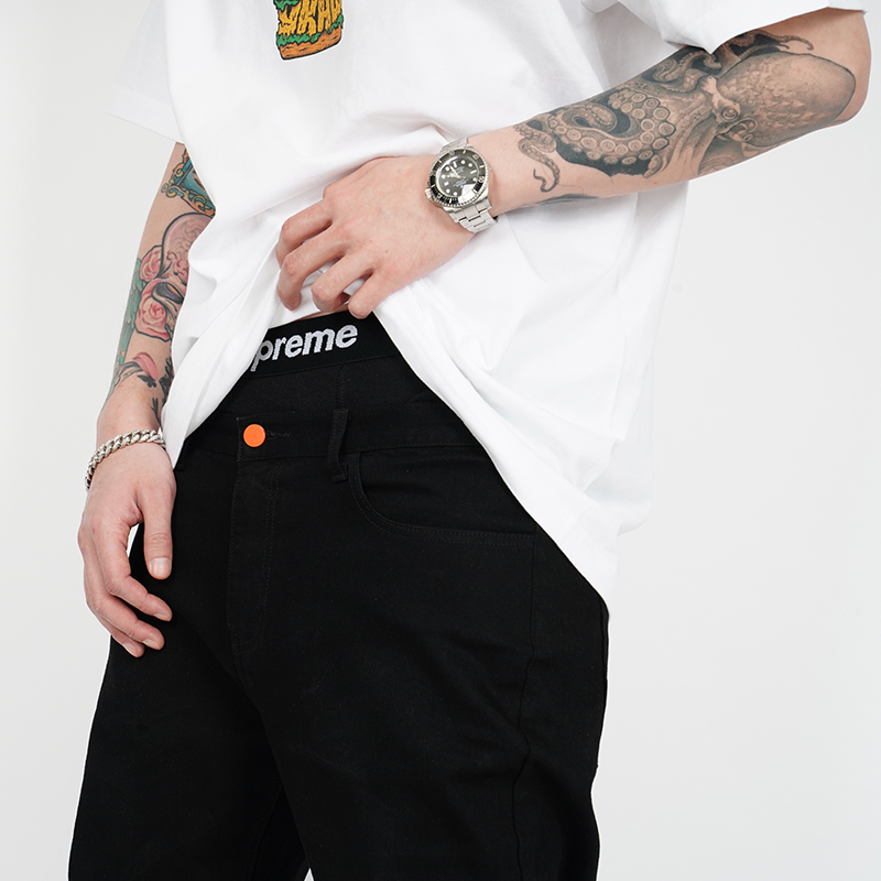 这款牛仔裤,拒绝根深蒂固的潮流,以复古和简约主义融合作为设计理念,将精致的生活态度融入于设计。