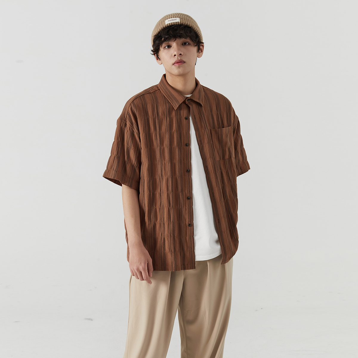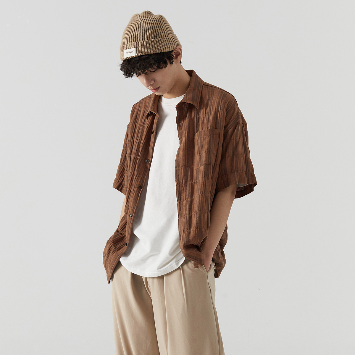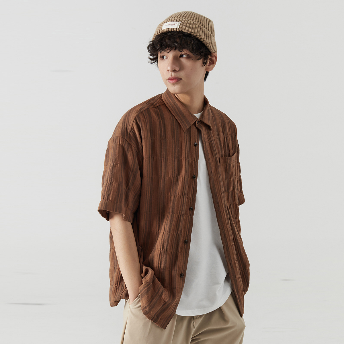 条纹的纹理,宽松的廓形,舒适的面料,亲肤透气,简约的版型,上身舒适自在,很有文艺范儿。
