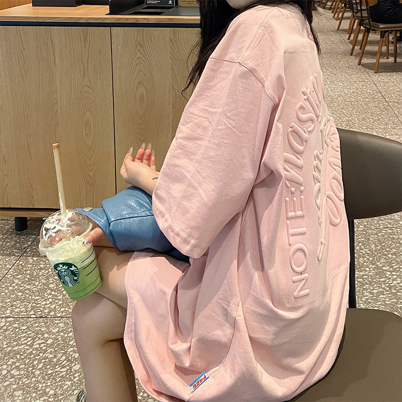 这款t恤是简约的风格,宽松的版型,时尚百搭,胸前的字母印花,很有个性,搭配牛仔裤或者短裤都很好看。