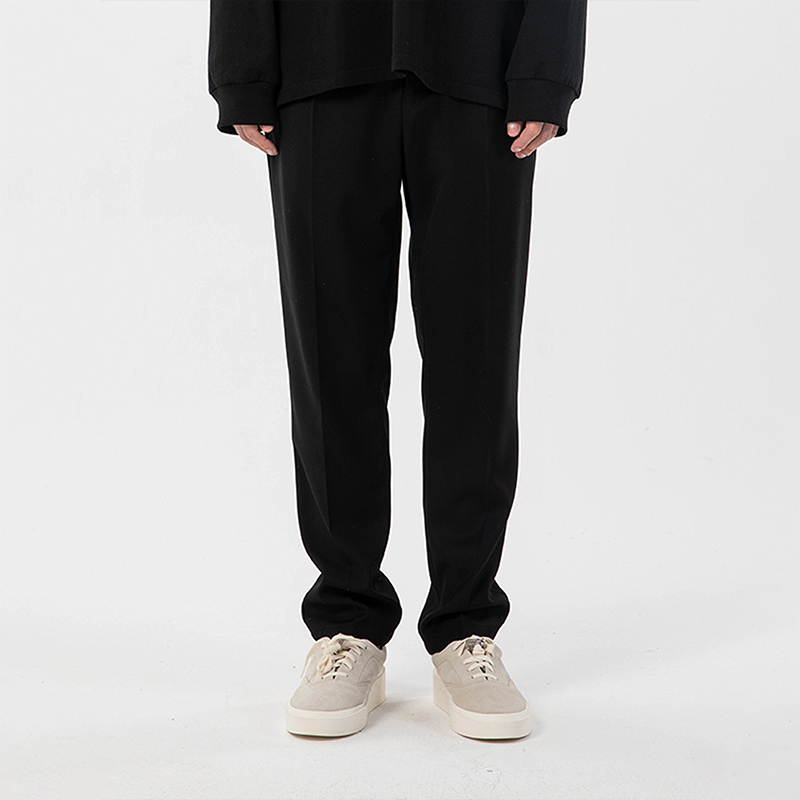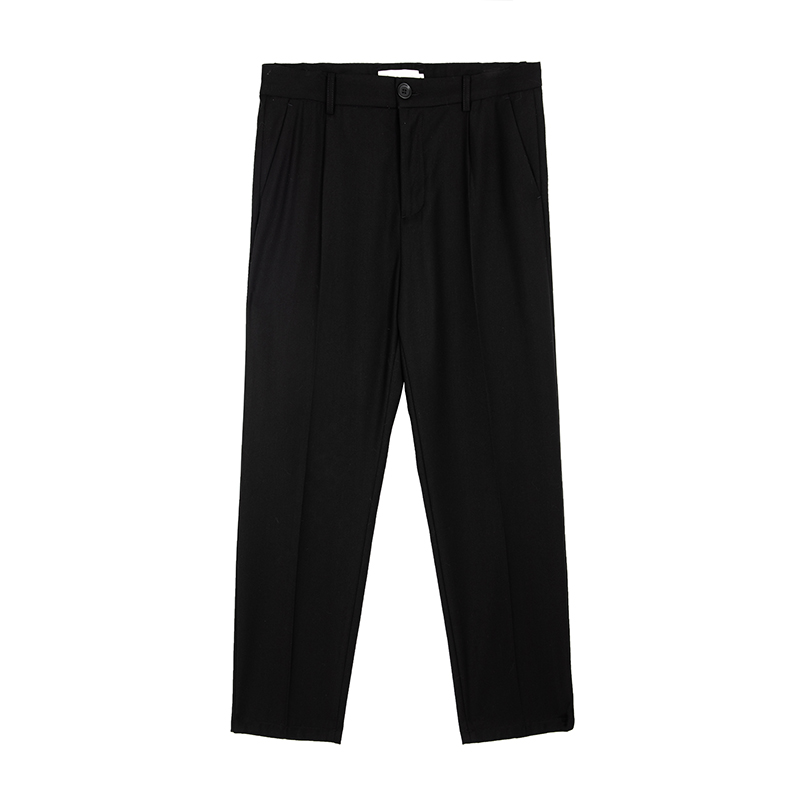 西装翻领,修饰颈部线条。宽松裤子,穿着舒适自在。直筒版型,适合各种身材。