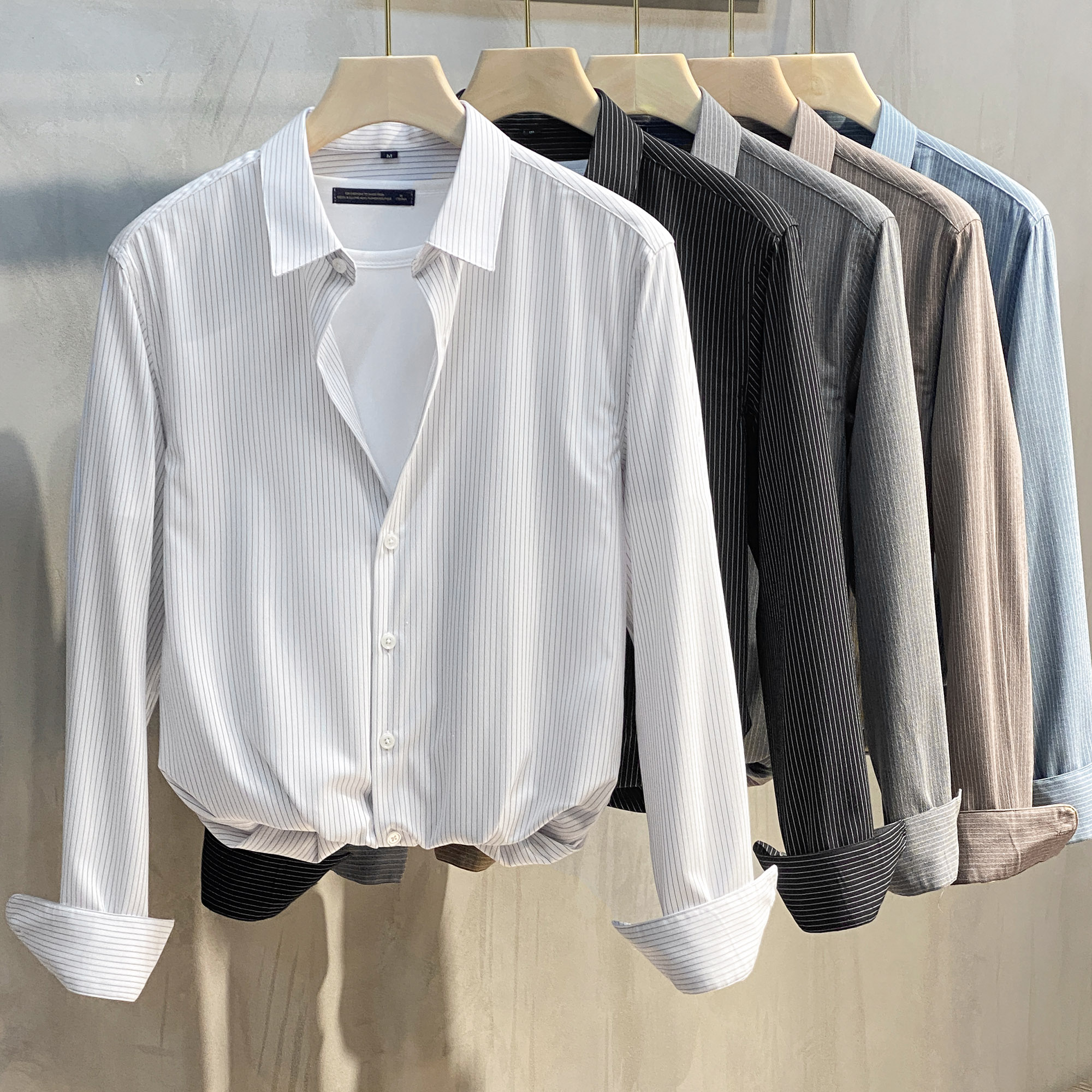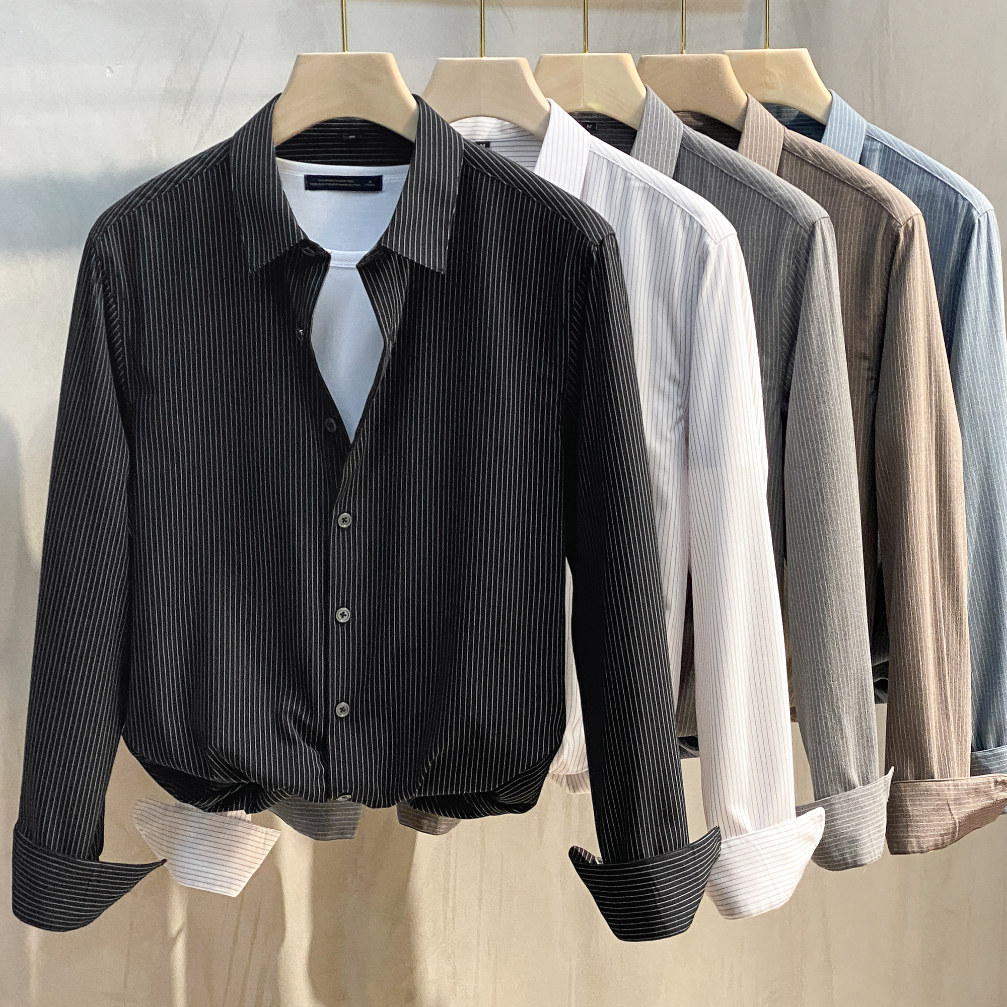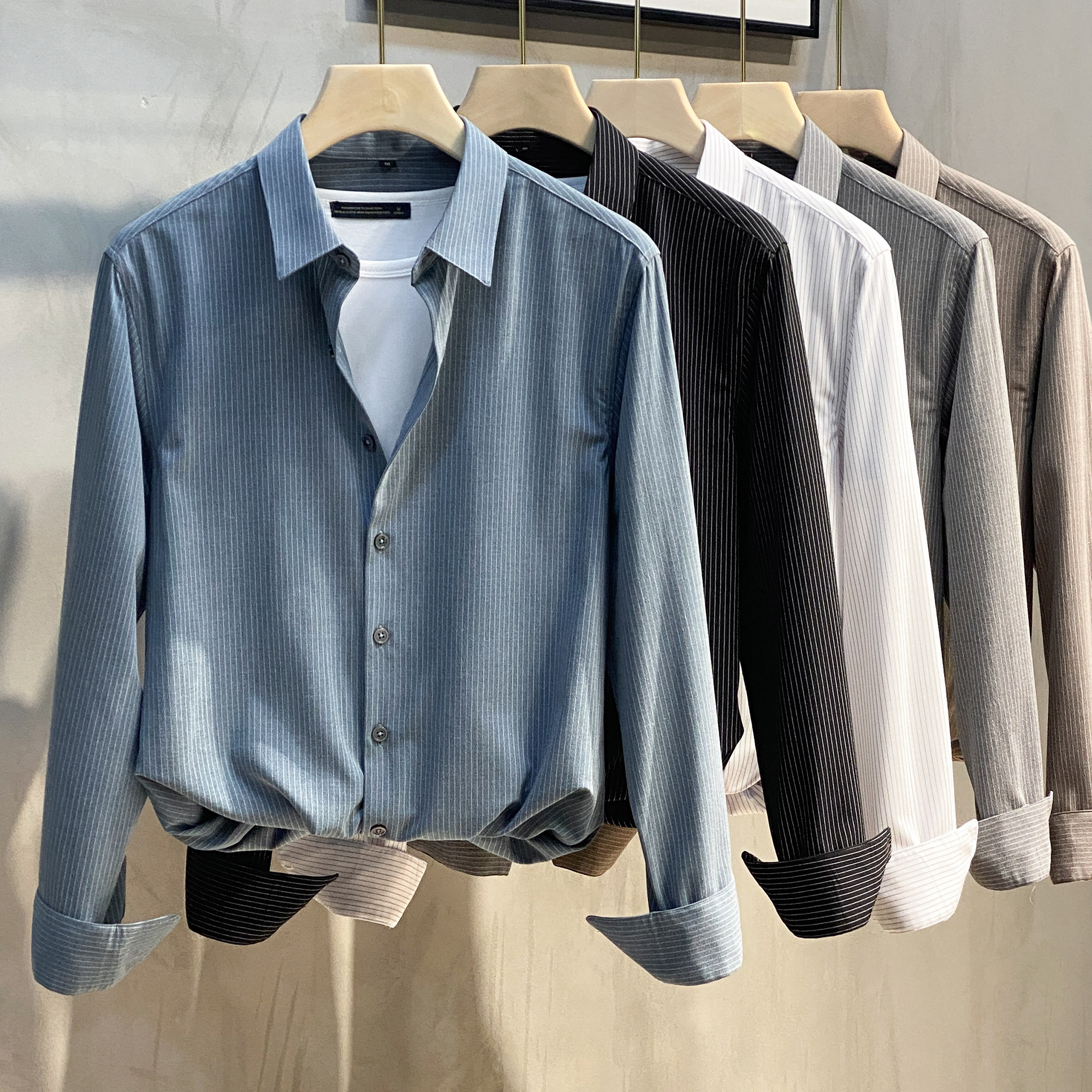 立领设计,修饰颈部曲线。商务版型,彰显绅士风度。宽松衬衣版型,穿着舒适自在。
