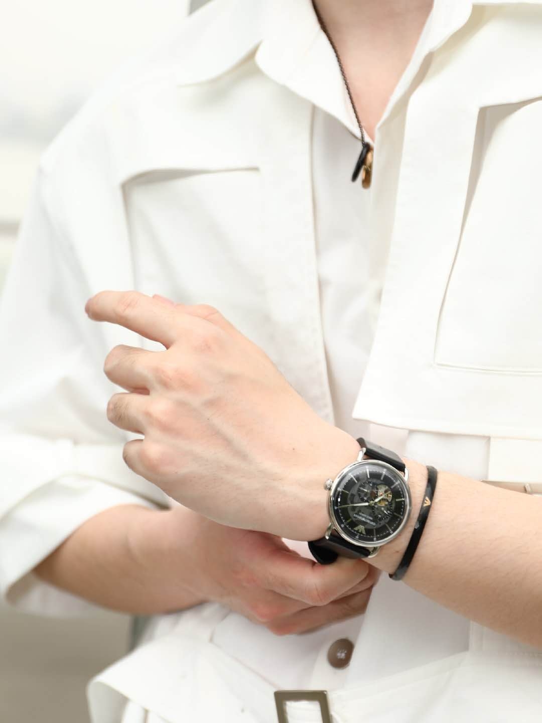 神秘酷黑的风格,很适合男生佩戴,不管是商务谈判还是日常通勤都很适合,带着也舒服,表盘创新无凸起。