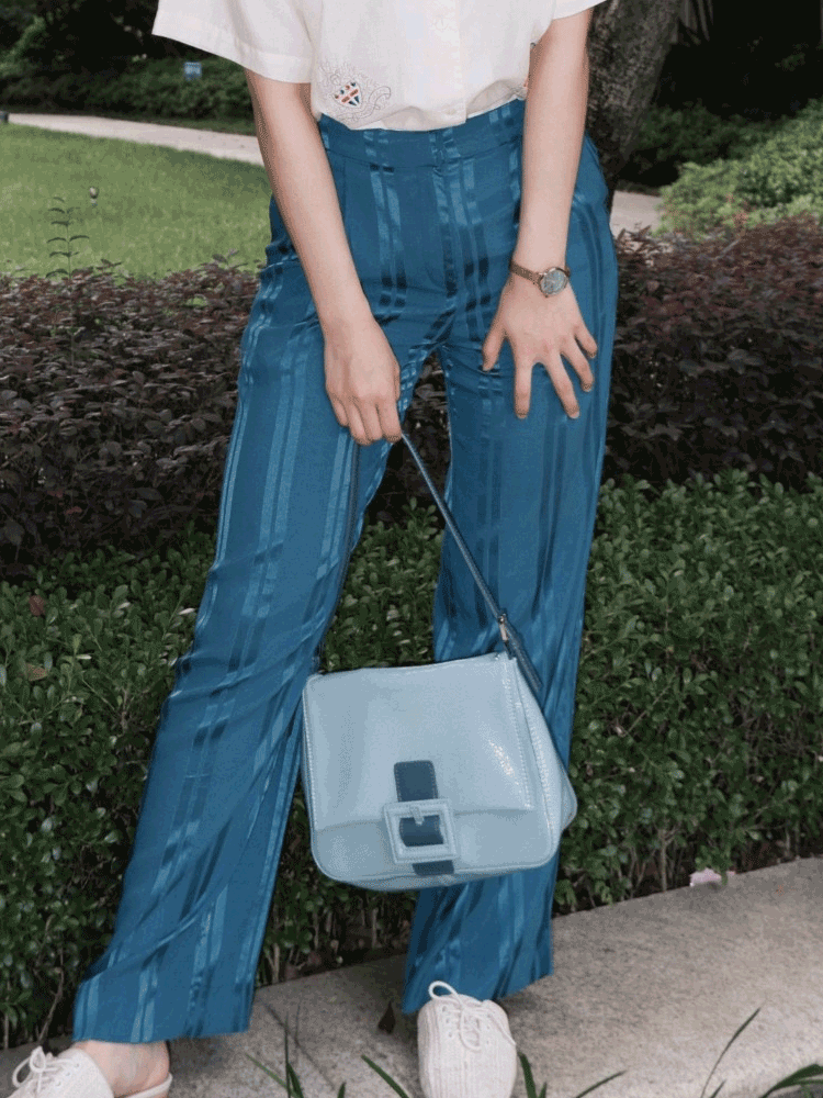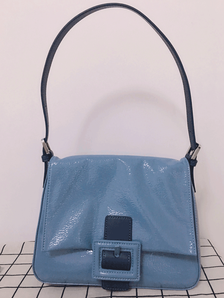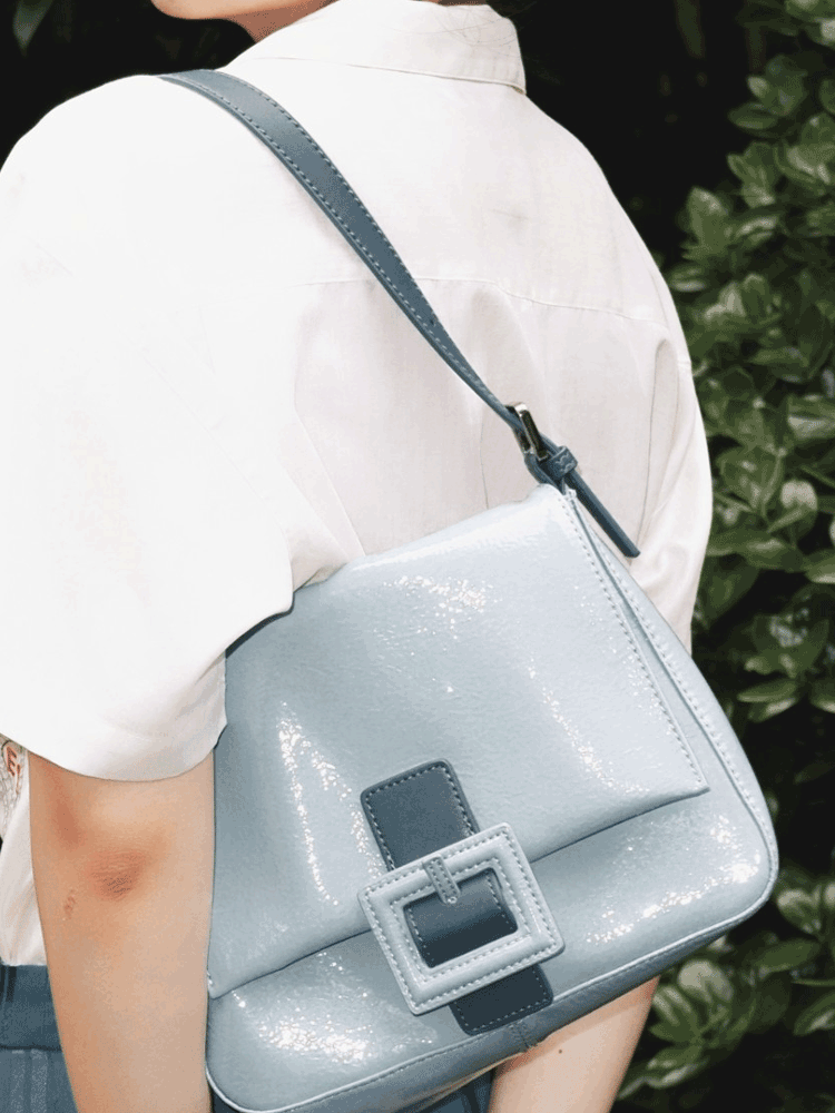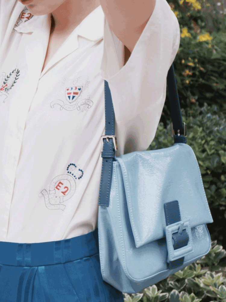 通过复古蓝色系进行渲染,彰显甜美优雅的格调。结合腋下包的款式设计,凸显十足的典雅气质。