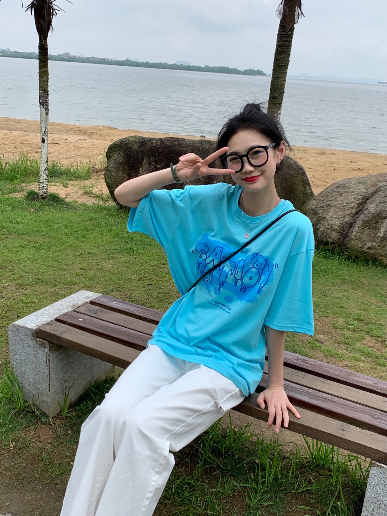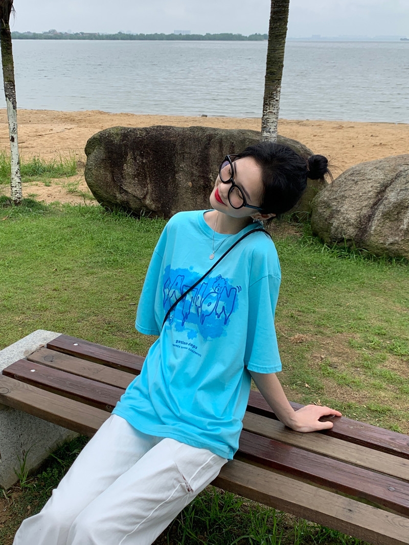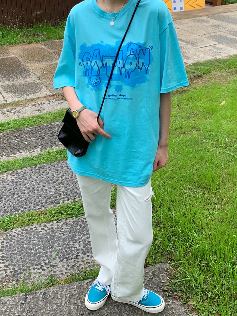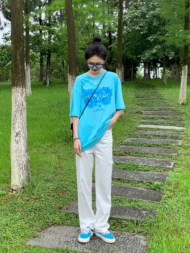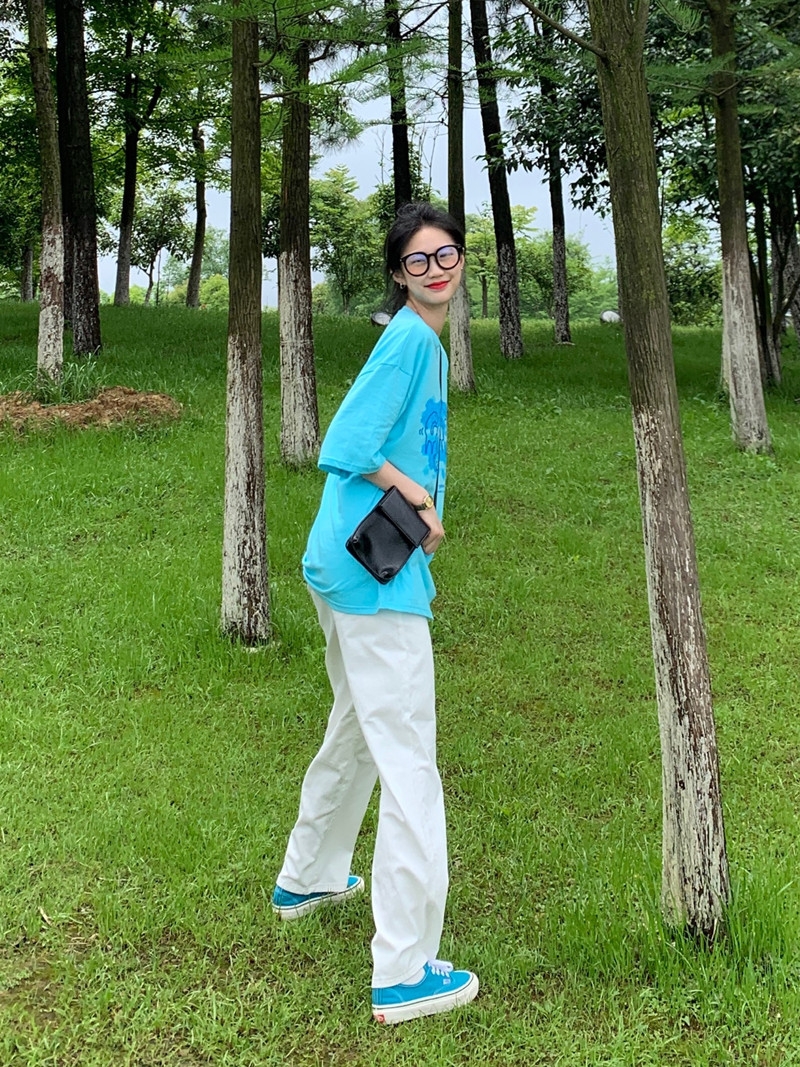 这件T恤搭配任何裤子都是很百搭的,日常可以是阔腿裤,短裤,百褶裙,牛仔裤或者格子裤,搭配同色系帆布鞋,青春气质没谁了,减龄又百搭。面料吸干清爽透气,出游必备,你也来囤几件呀!