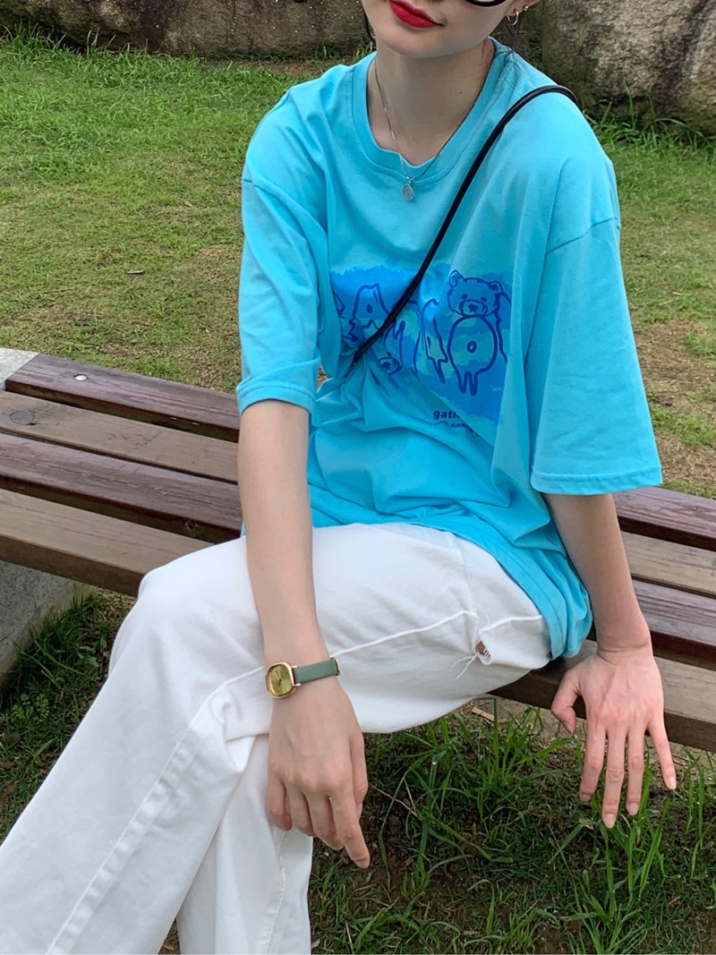一抹海盐味道的颜色、超级显白元气可爱,不知道姐妹们喜欢这种奶乎乎的颜色吗? 看起来温温柔柔、干净又清爽的T恤真的超适合炎炎夏日,简直就是夏日必备的穿搭单品,T恤衫是必囤,就像快乐肥宅水一样!