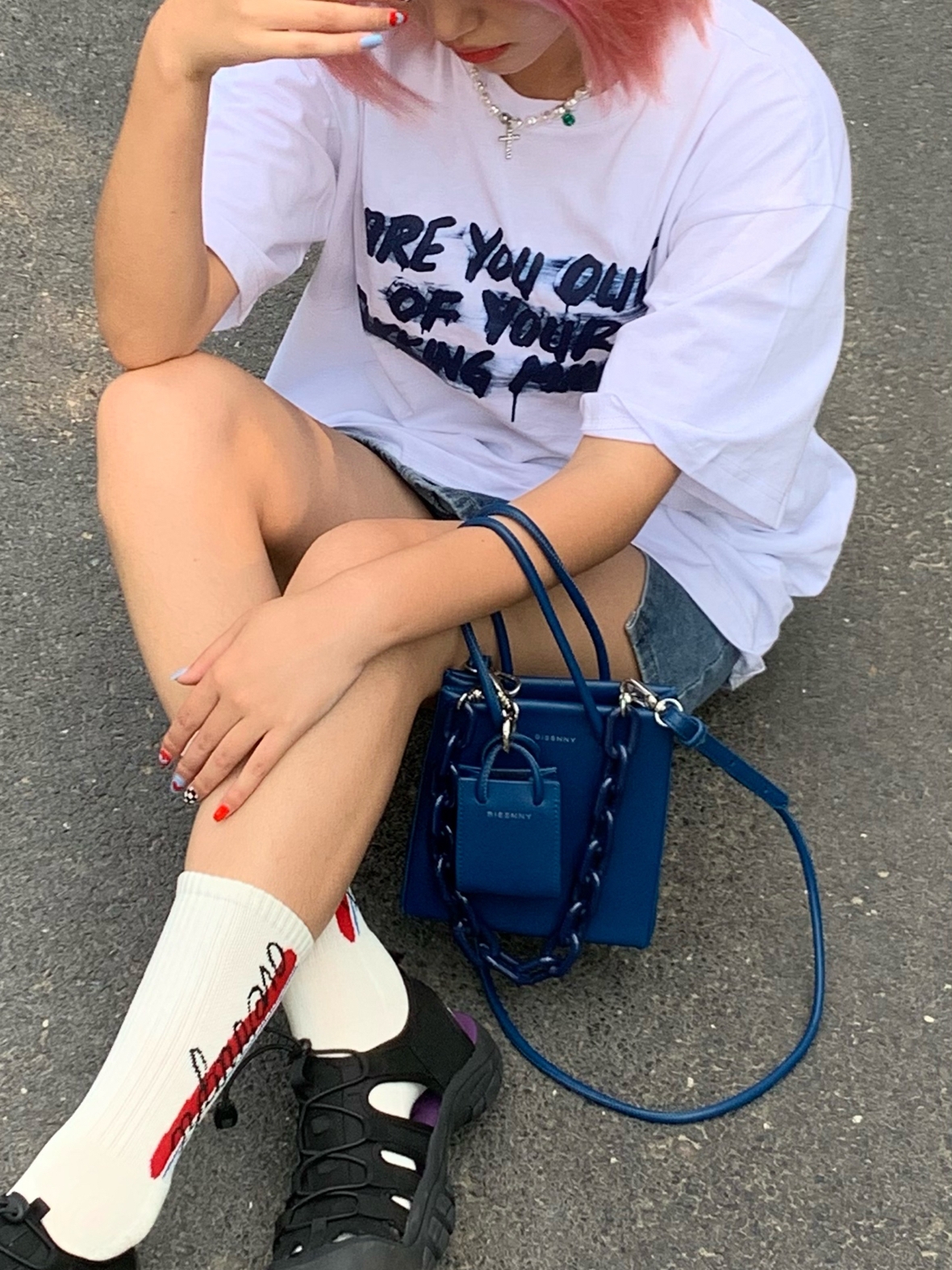 白蓝配色简约又好看,前面的印花真的太有设计感了。
