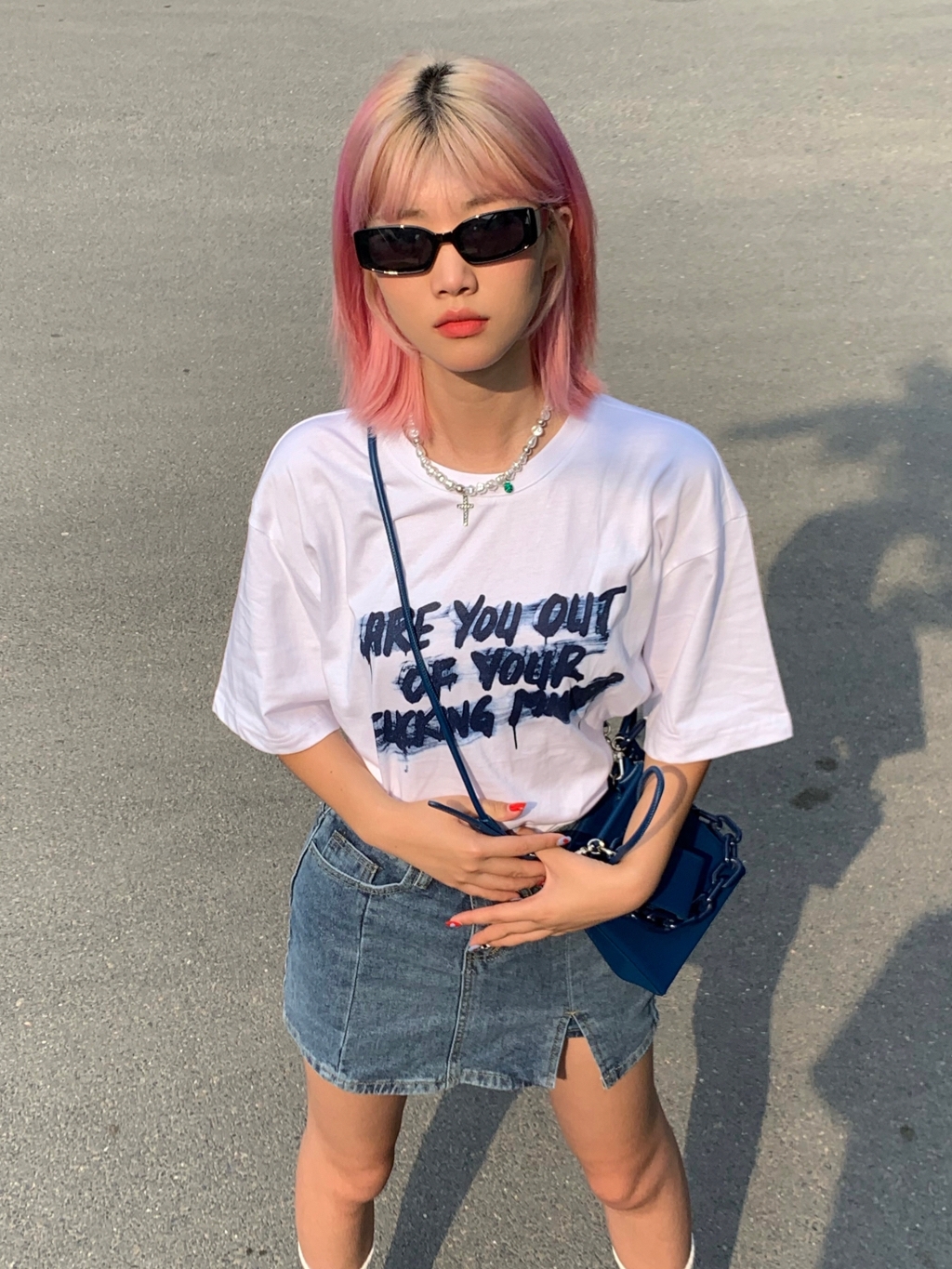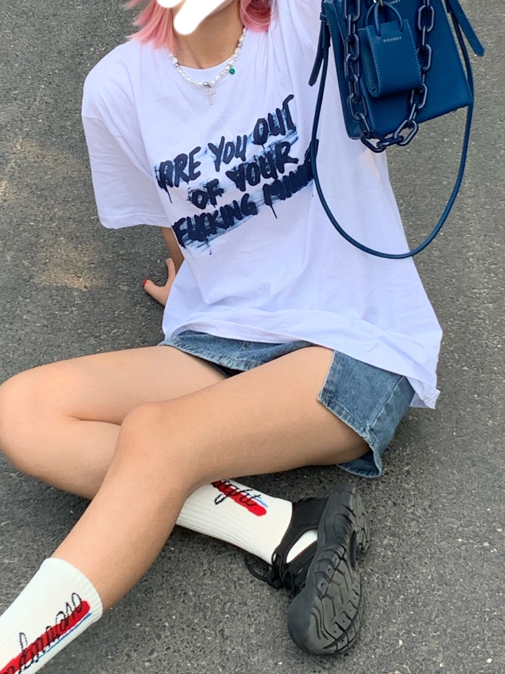 这款t恤是简约的风格,宽松的版型,时尚百搭,胸前的字母印花,很有个性,搭配牛仔裤或者短裤都很好看。