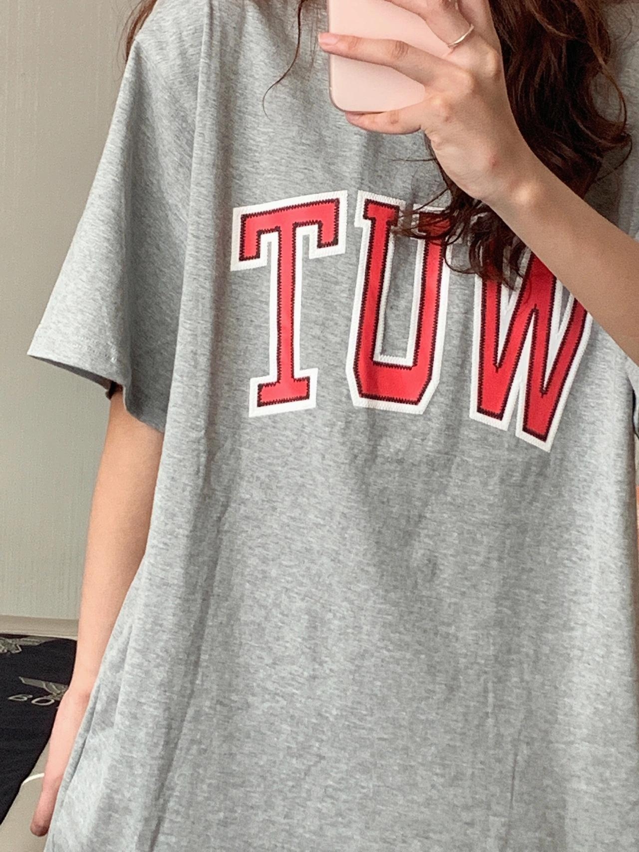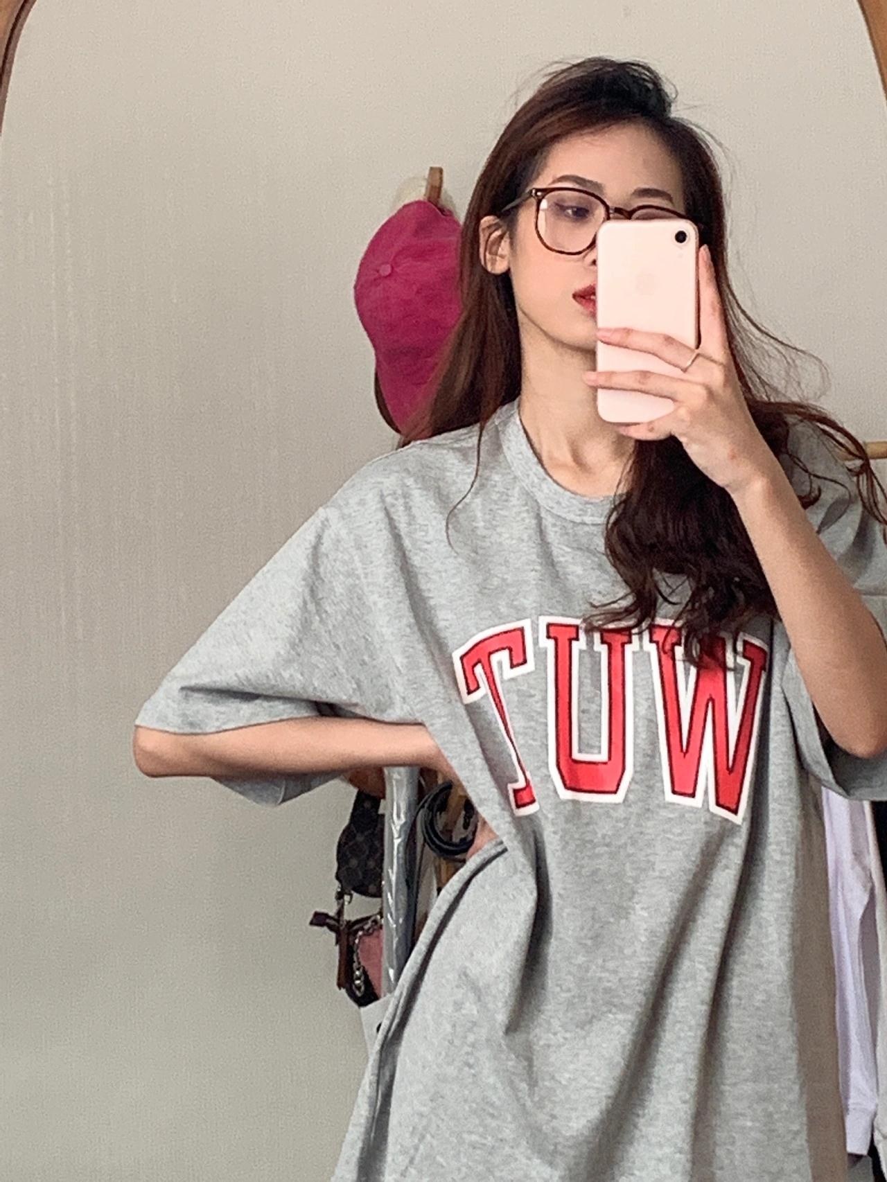 这款t恤是简约的风格,宽松的版型,时尚百搭,胸前的字母印花,很有个性,搭配牛仔裤或者短裤都很好看。