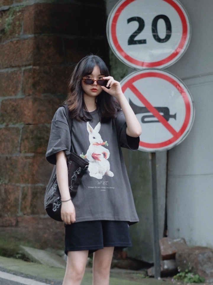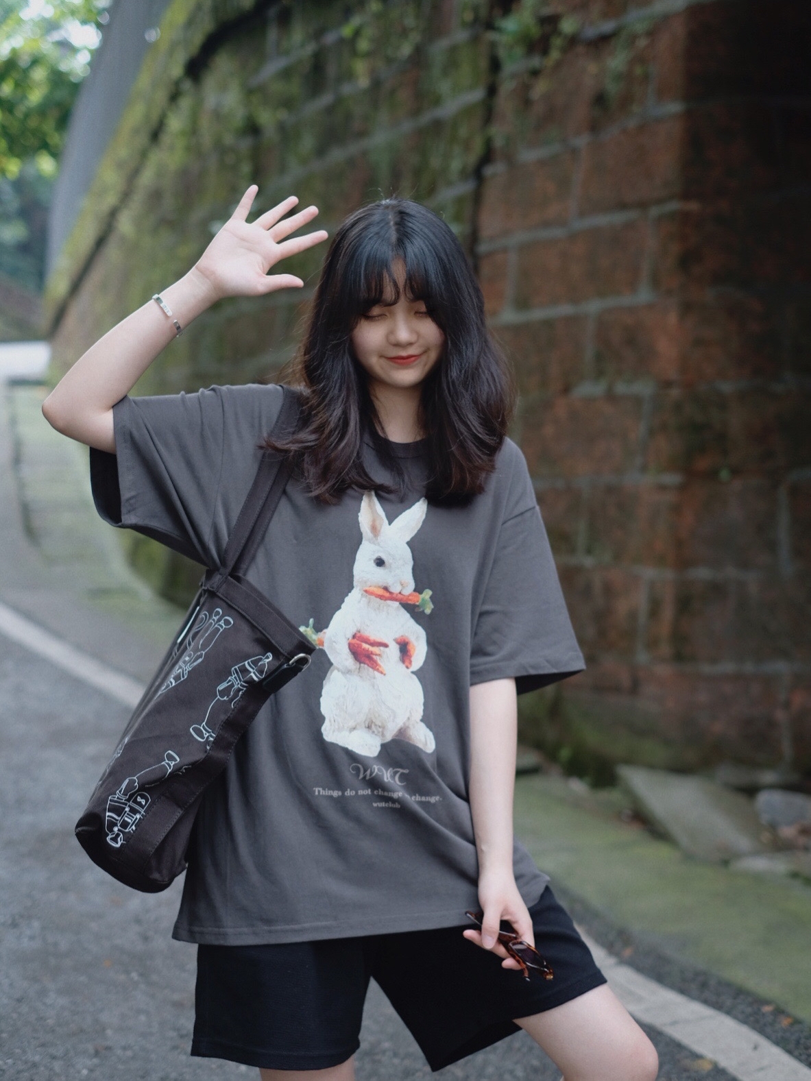 WUT兔子短袖真的好看,炭灰色好显高级,休闲百搭必备款短袖。