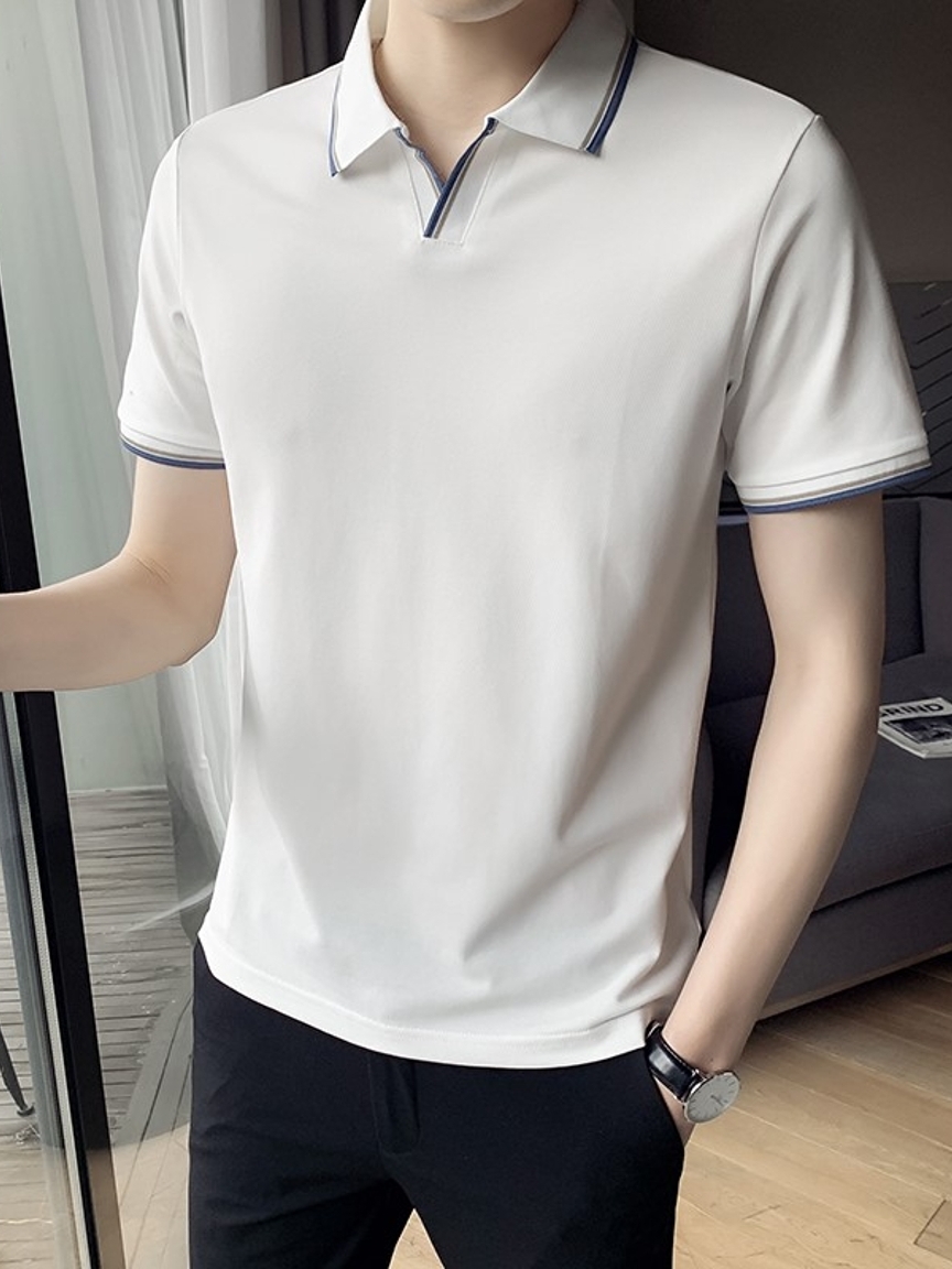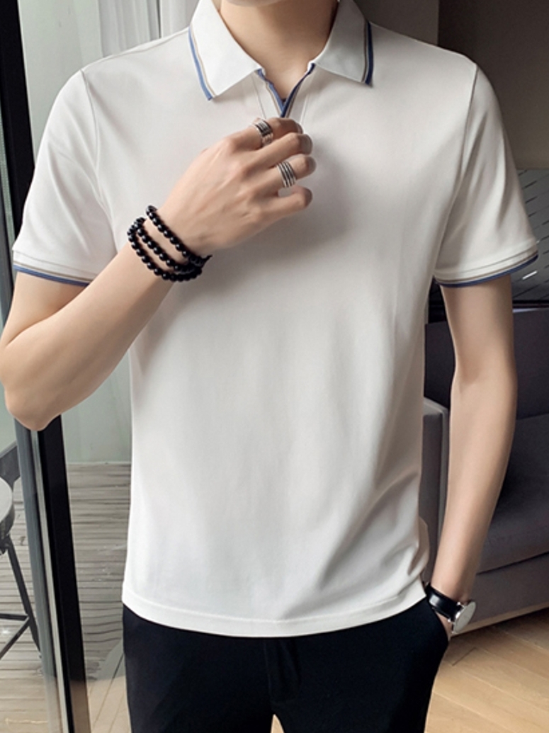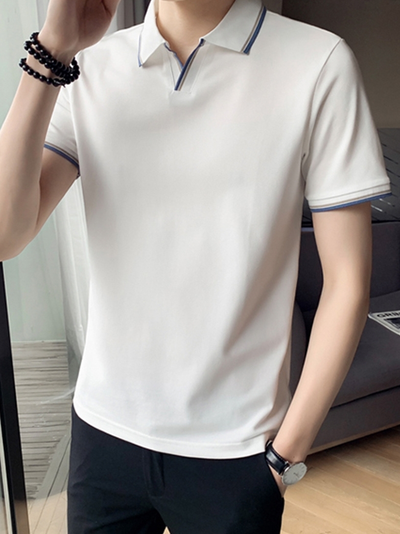 这样的一款休闲POLO衫要是搭配的话首先选择浅色的休闲裤会比较的映衬上衣,感觉这样就有了一种清雅别致的感觉。