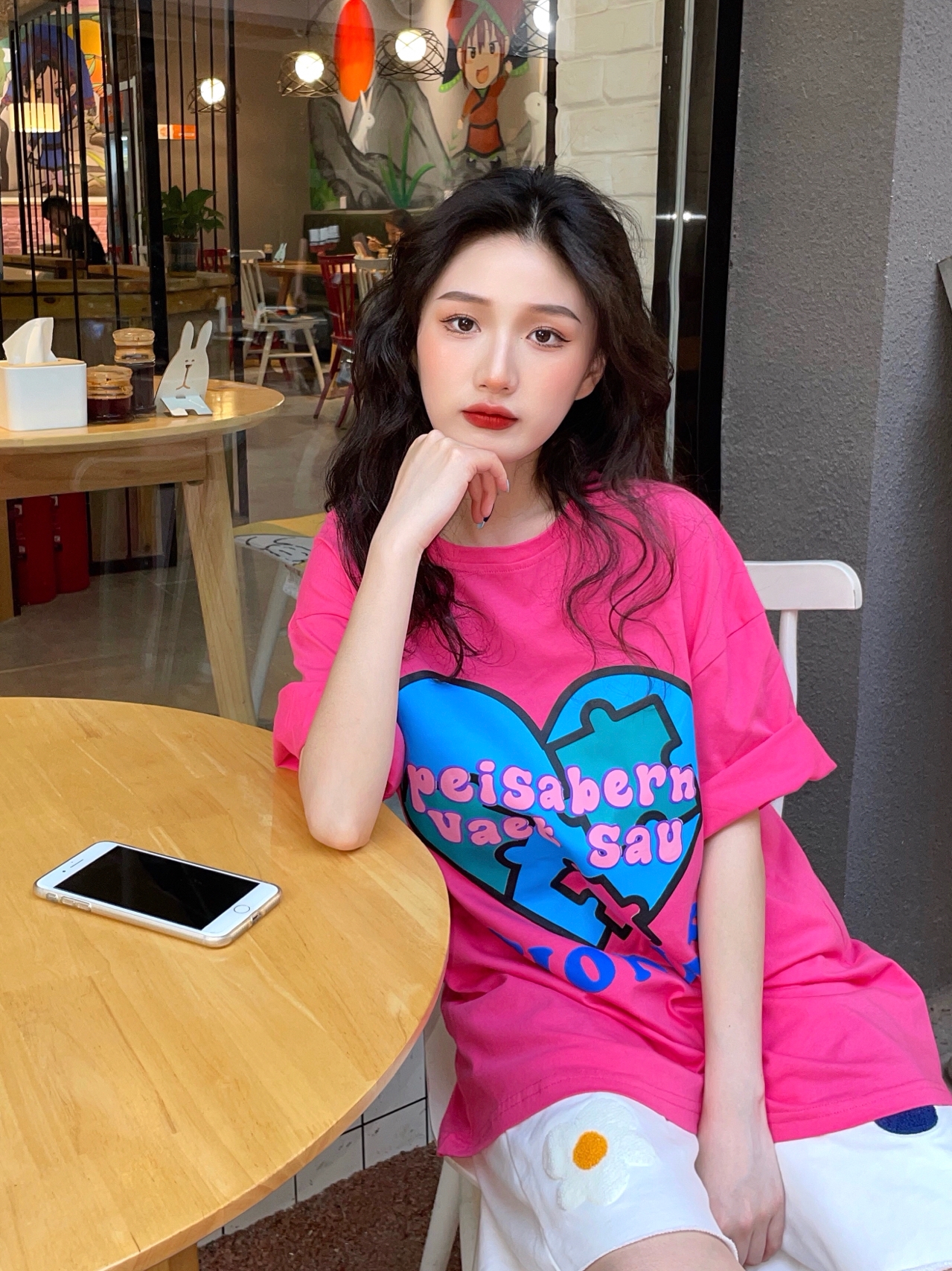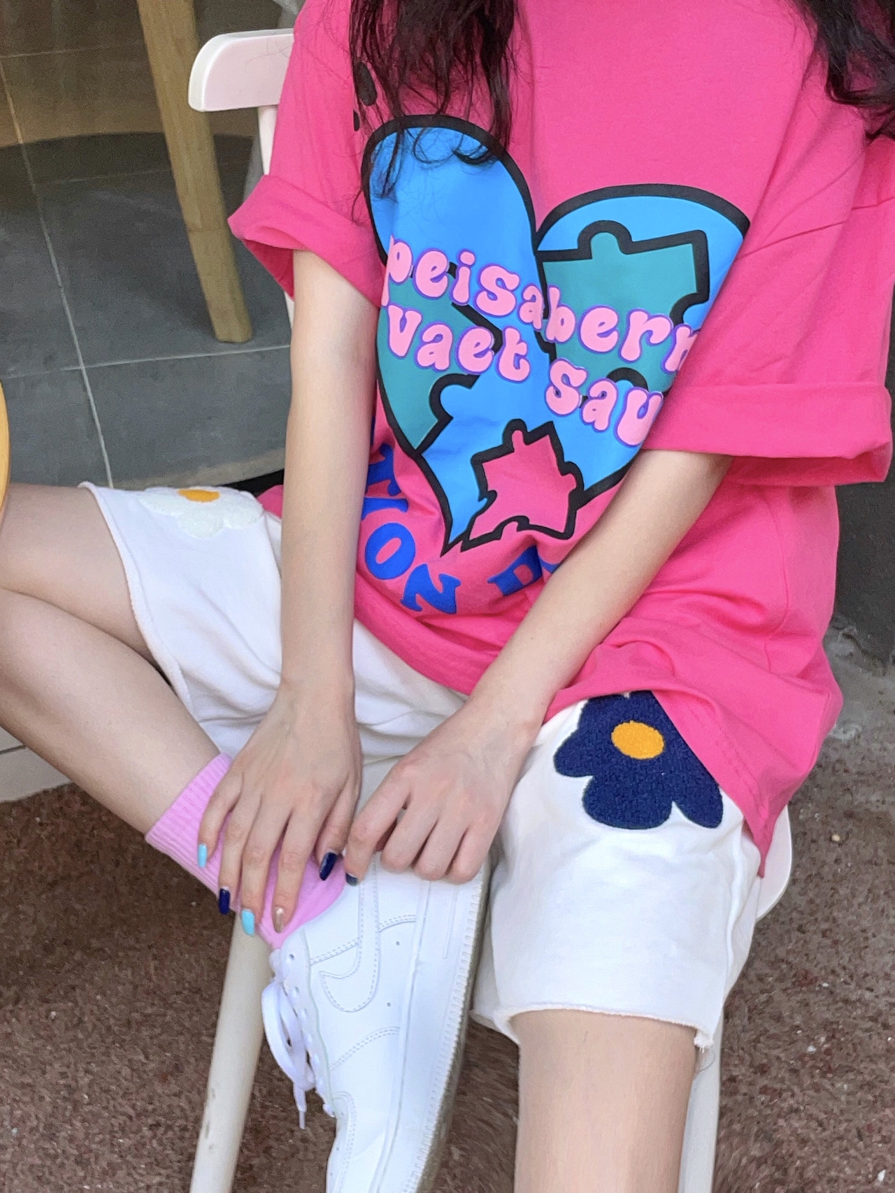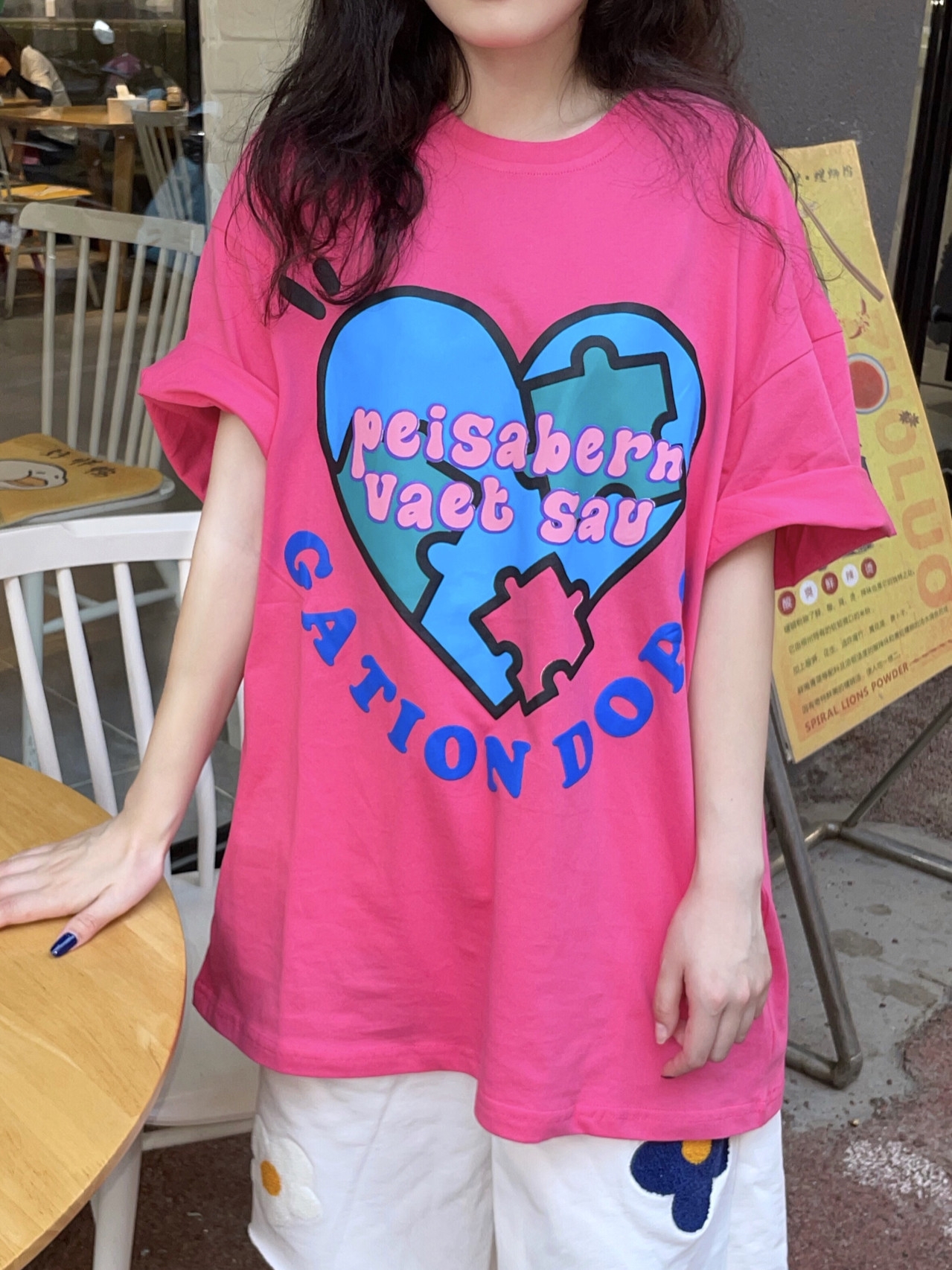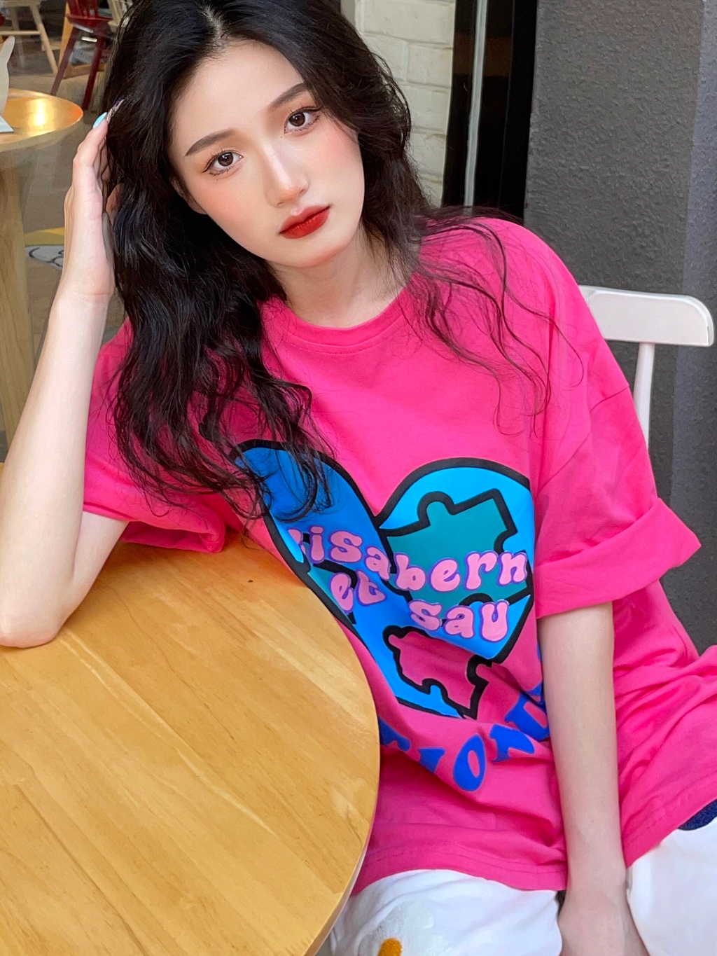 这款t恤是简约的风格,宽松的版型,时尚百搭,胸前的字母印花,很有个性,搭配牛仔裤或者短裤都很好看。