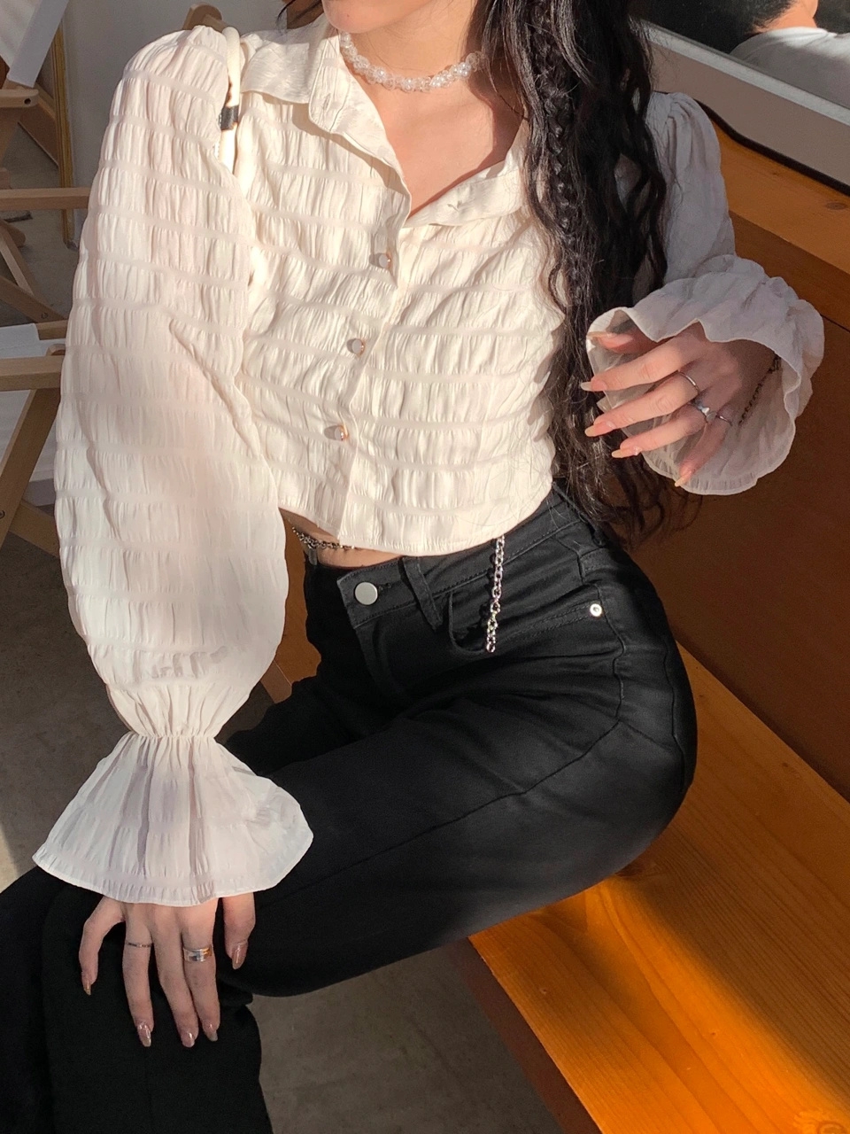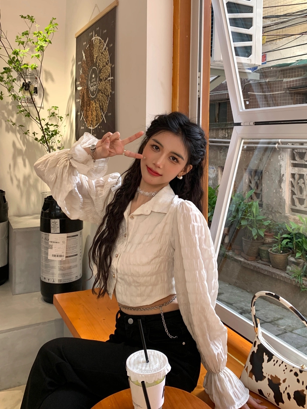 袖子超级好看,质感也很好,真的太太太显身材了!!可爱又带有性感,而且超级显瘦!!还不冲吗!辣妹们!