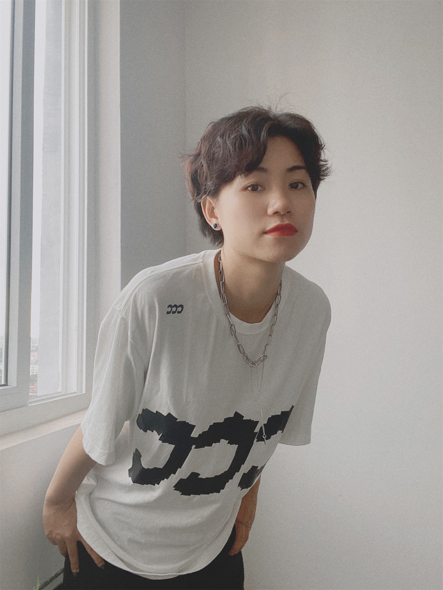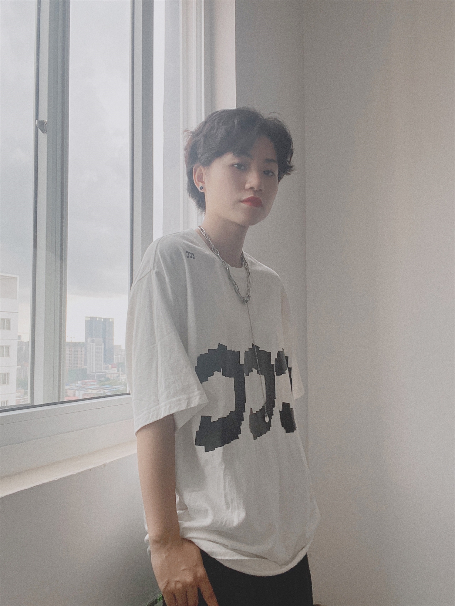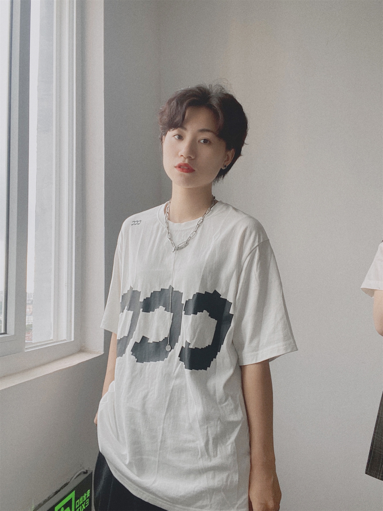 短袖很好看,简单大方,左肩小ccc设计也不错,宽松舒适感,与亲肤的穿着体验,无论打底或是单穿都十分好