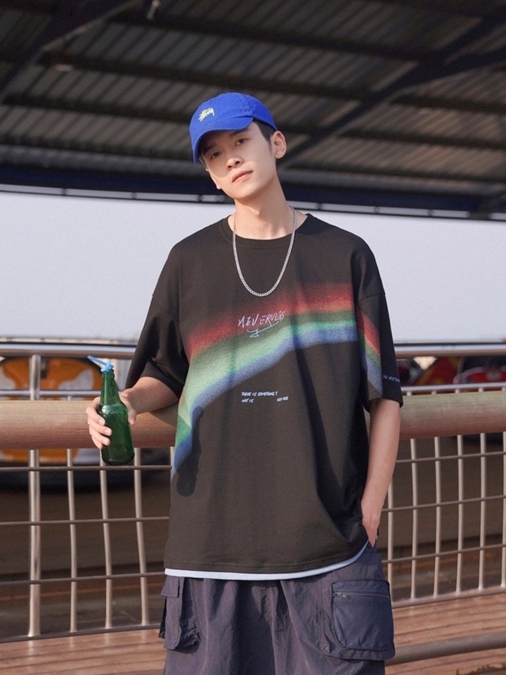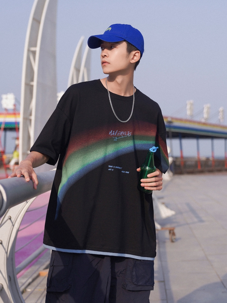纯色圆领学生T,适合配成情侣衫哦。如果你也喜欢简单,那这一款再合适不过了。宽大的袖子搭配宽松的剪裁,慵懒范十足。虽然是宽大的设计,却用了正常的。