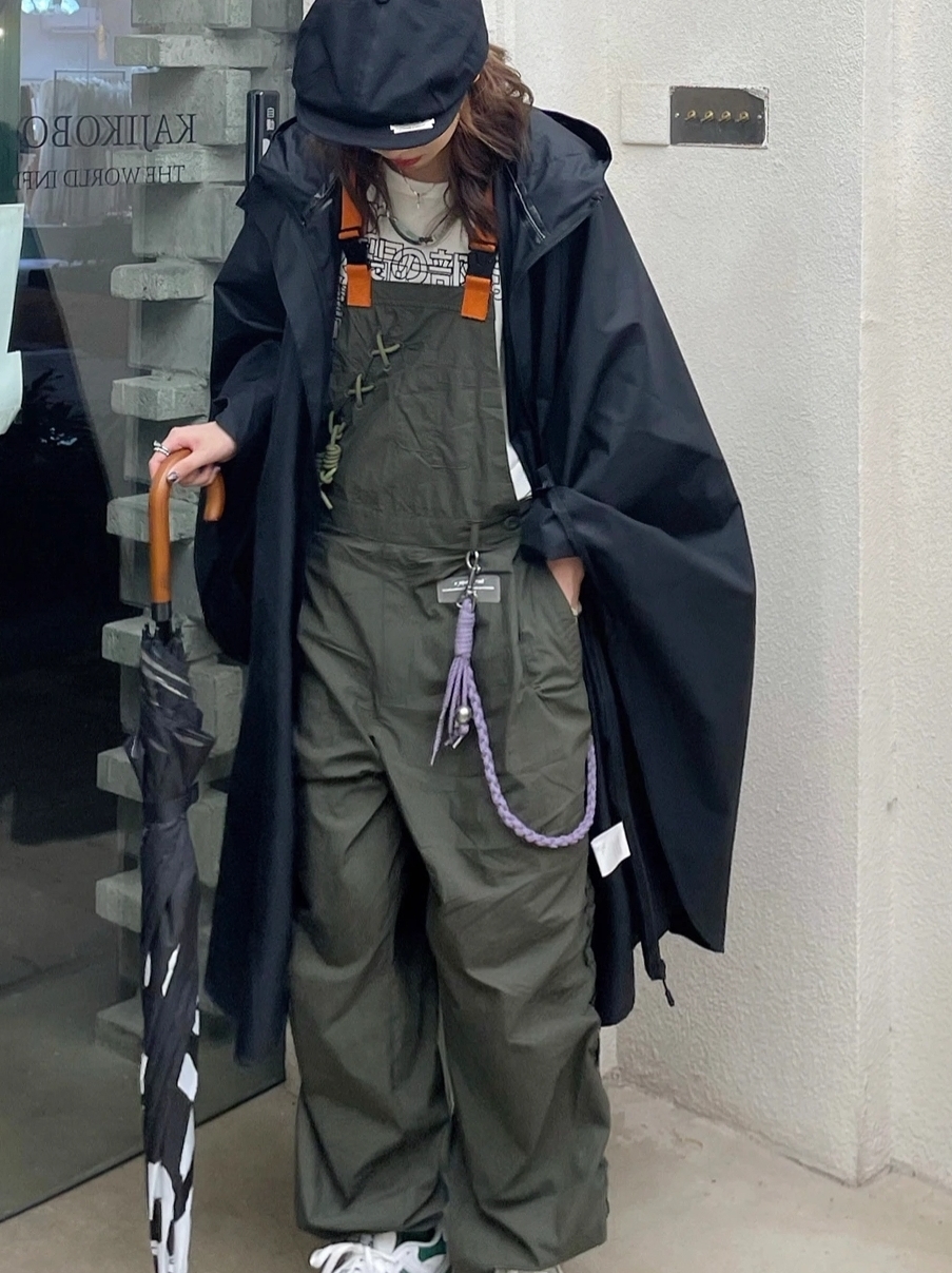 减龄利器当然少不了背带裤的身影啦!这条裤子九分的长度不经意间露出脚踝白皙的肌肤,搭配宽松的版型,很好的藏住了腿部的小肉肉。