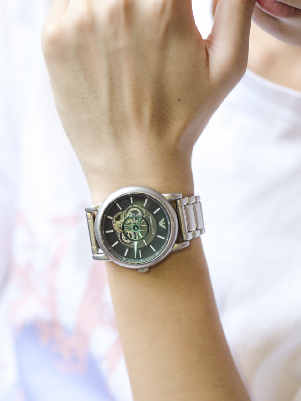 适合年轻人佩戴的手表,首先外观一定要精致时尚,而这款阿玛尼的机械表就做到了。磨砂的外观很有质感,独特的镂空表盘设计,可以看清机械内芯的运作,让人爱不释手。简单的指针表盘取代了复杂的数字表盘,戴上后散发干练的气场。象征阿玛尼品牌的标志镶嵌于表盘之上,仿佛在诉说着品牌的无尽魅力。