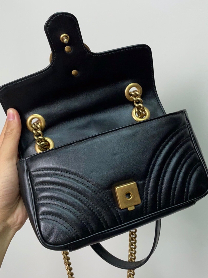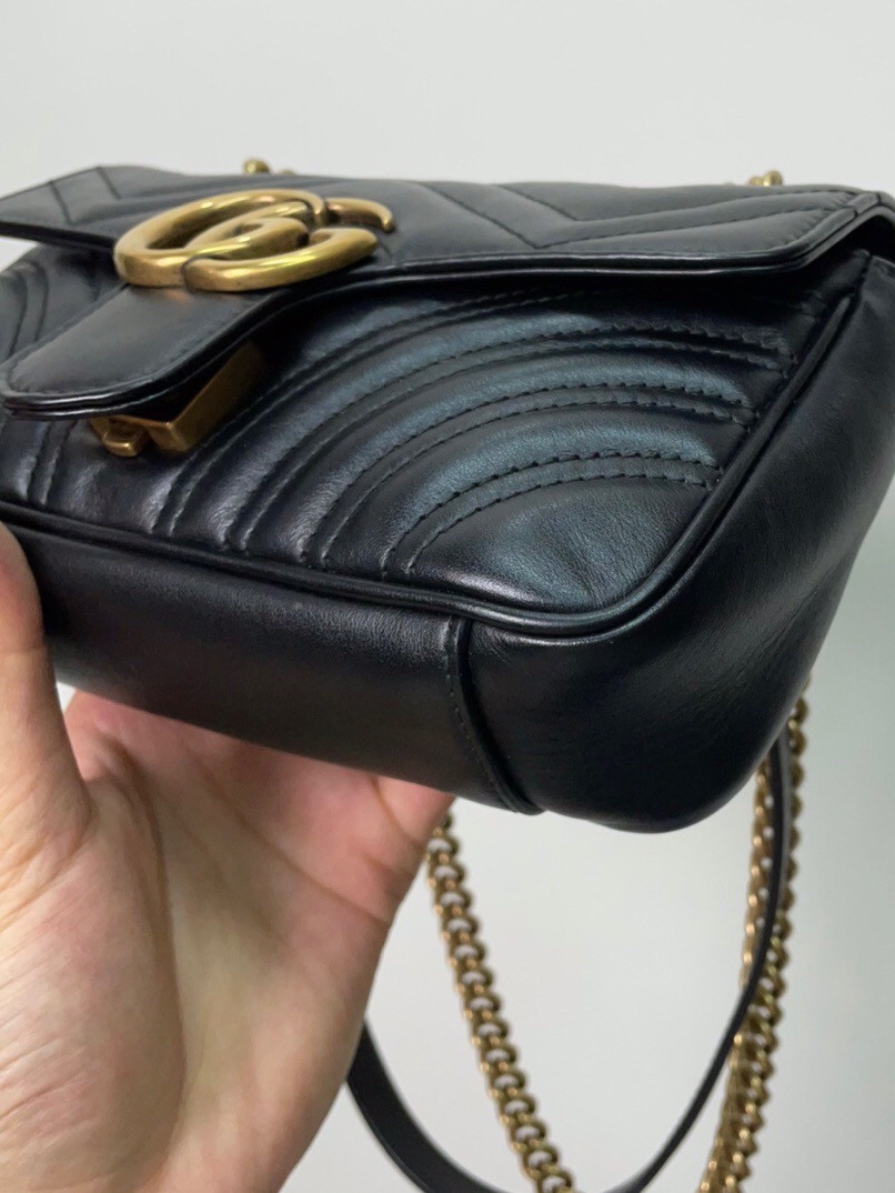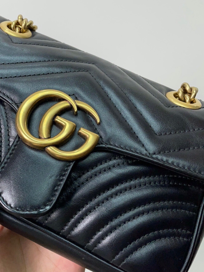 这款包包也是我刚刚入手的,我已经有好几个GUCCI 的包包了,这个包包外形十分小巧,适合夏天穿裙子的时候被,双G打造的锁扣,简单大方,波纹纹理的外形,柔美感十足。