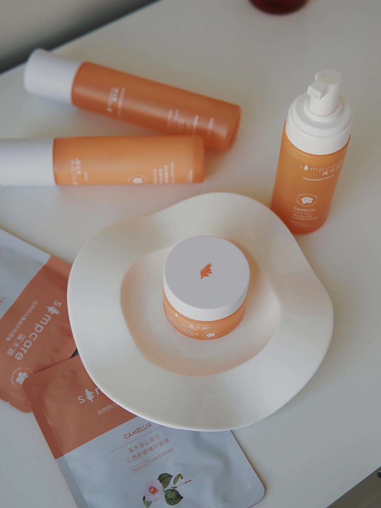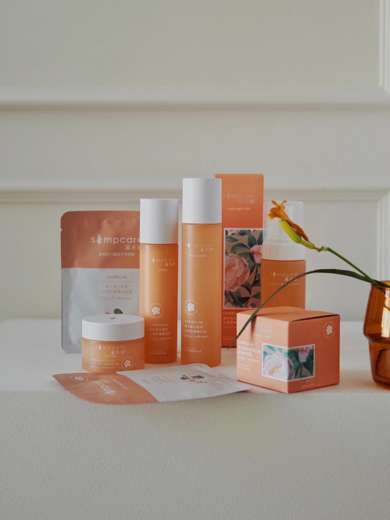 是承包了整个七月幸福的一抹“橙”,包括洁面、水乳、霜、以及面膜,敏感肌的妹子也许更能懂我的喜悦。n主打的山茶花不但有愉悦的香氛味道,更是能让肌肤保持健康状态。