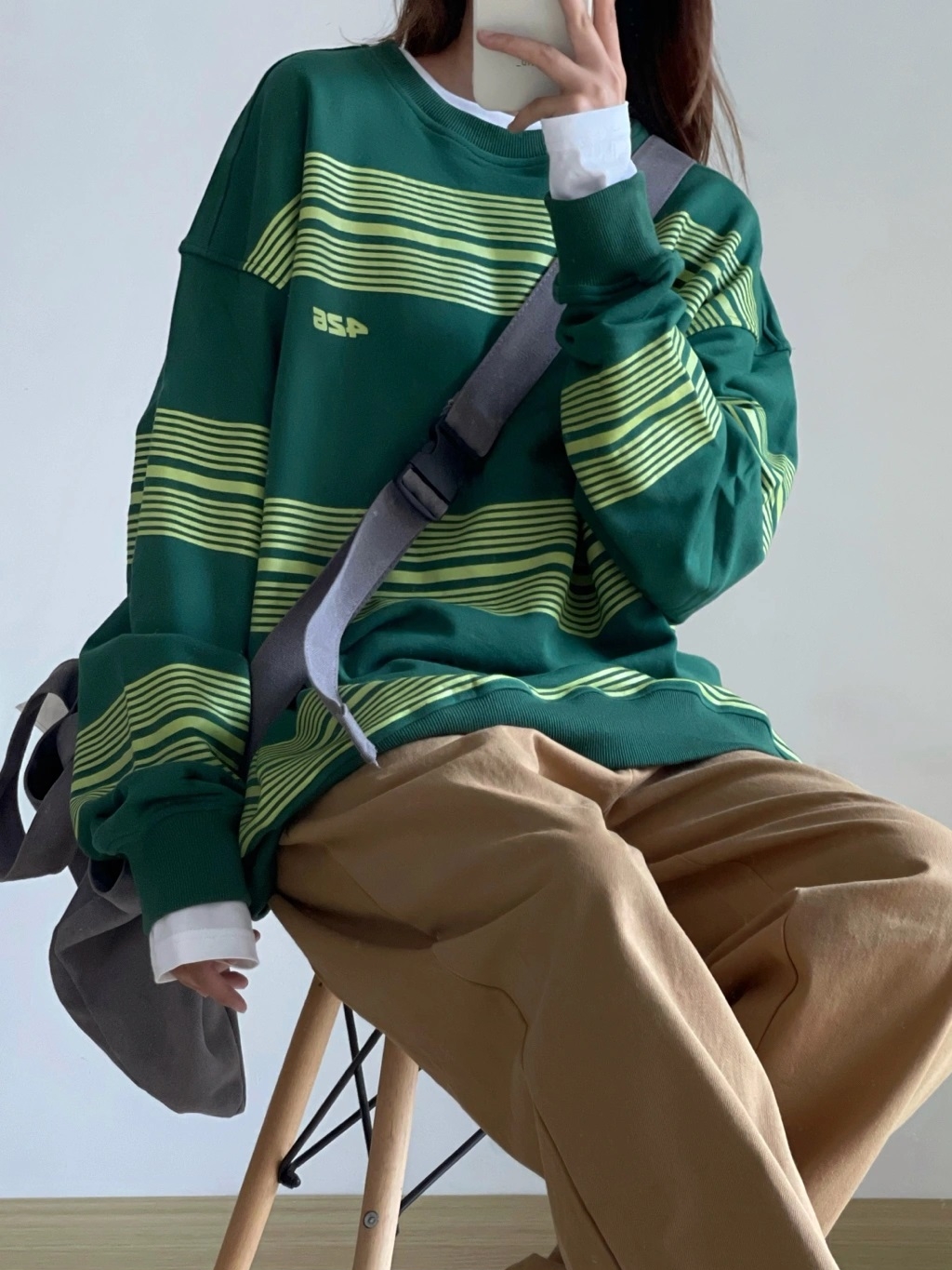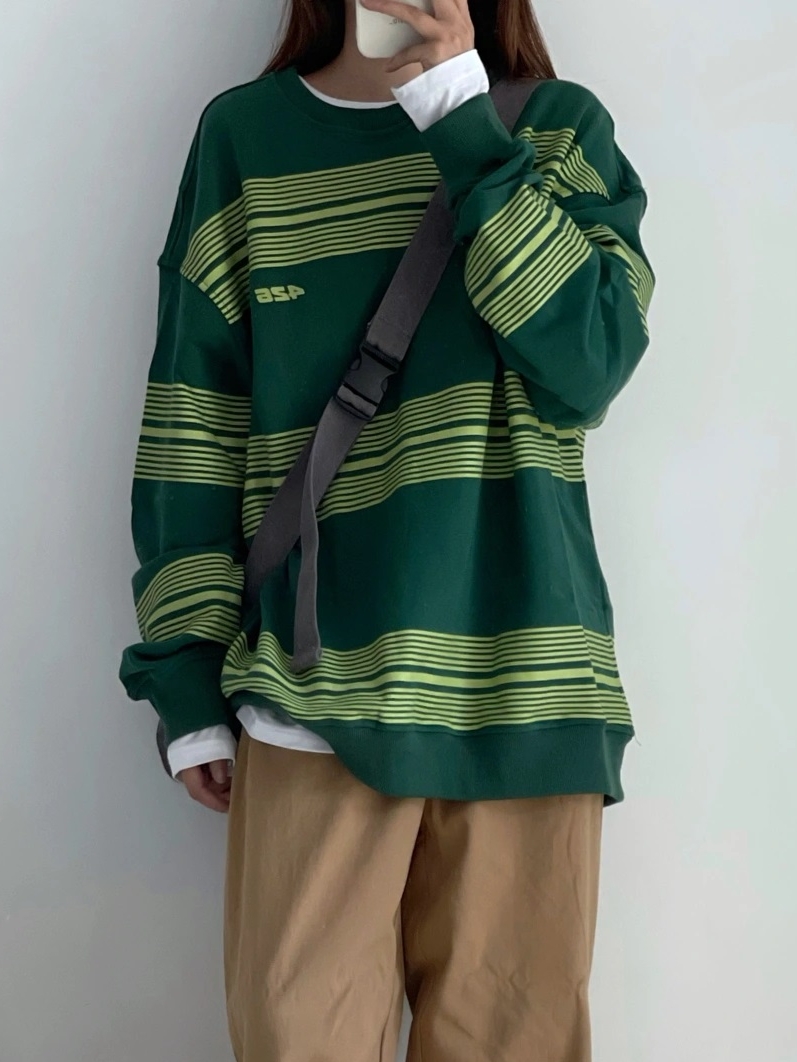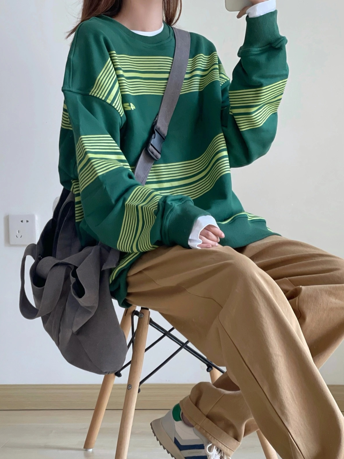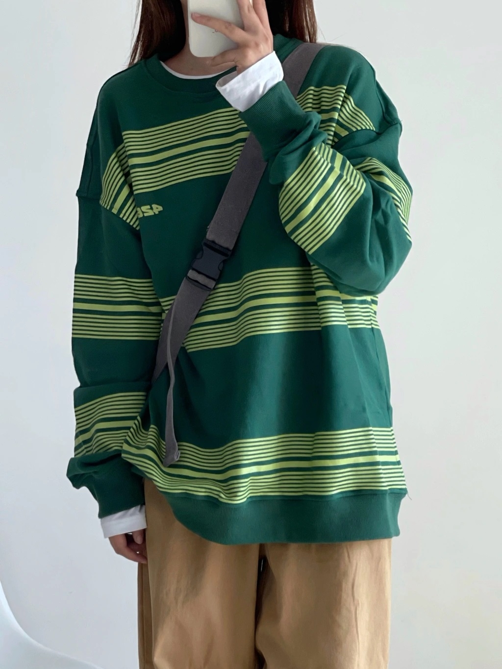 这个绿还挺显白,特意大了两个码 为了露个打底白边,控制不住的叠穿。