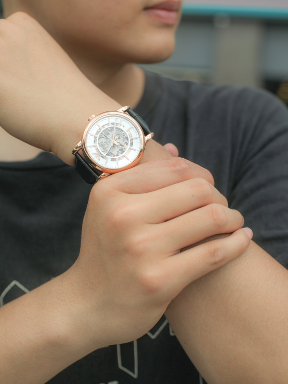 这款阿玛尼机械腕表AR60007的整个表盘以经典镂空设计为主,从正面看,既能清晰地看到指针的转动,又能感受机械机芯的韵律,画面直击内心;从背面观察,镂空设计中看到部分机芯,神秘感十足。此外,有纹理感的皮质表带,柔软亲肤又舒适透气。手表表盘以白色为主,再搭配大气金色,整体看起来奢华高档。同时这款手表还有防水的功能,能够满足日常使用需求。