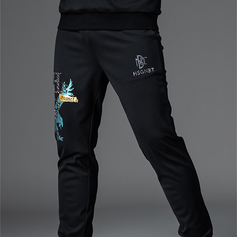 精工裁剪的插袋设计,美观实用简约不凡。时尚艺术烫钻图案,微立体设计层次感更强力,更有视觉冲击力。束脚修身版型,尽显休闲街头风尚。