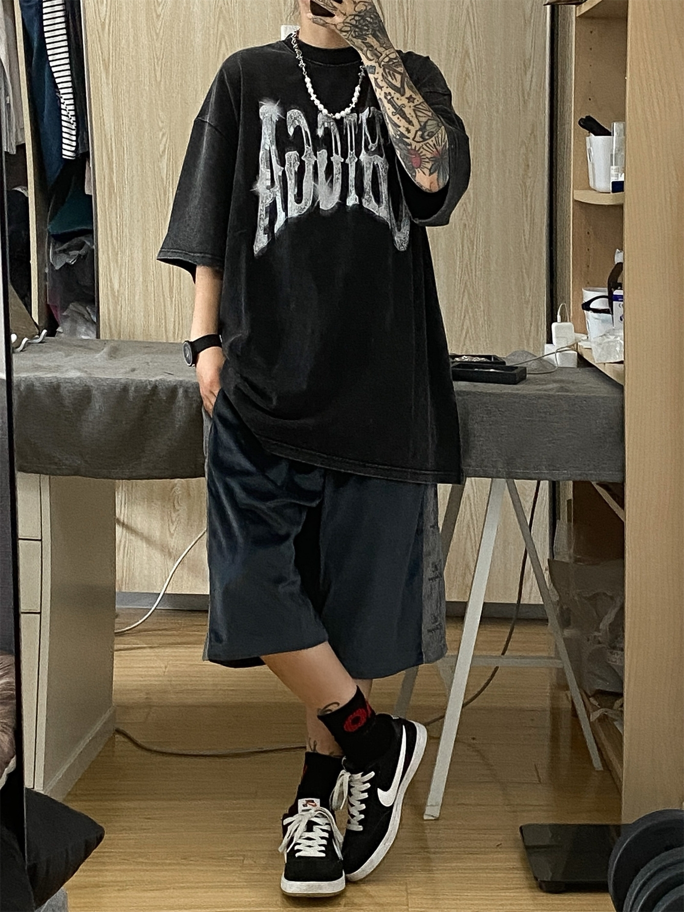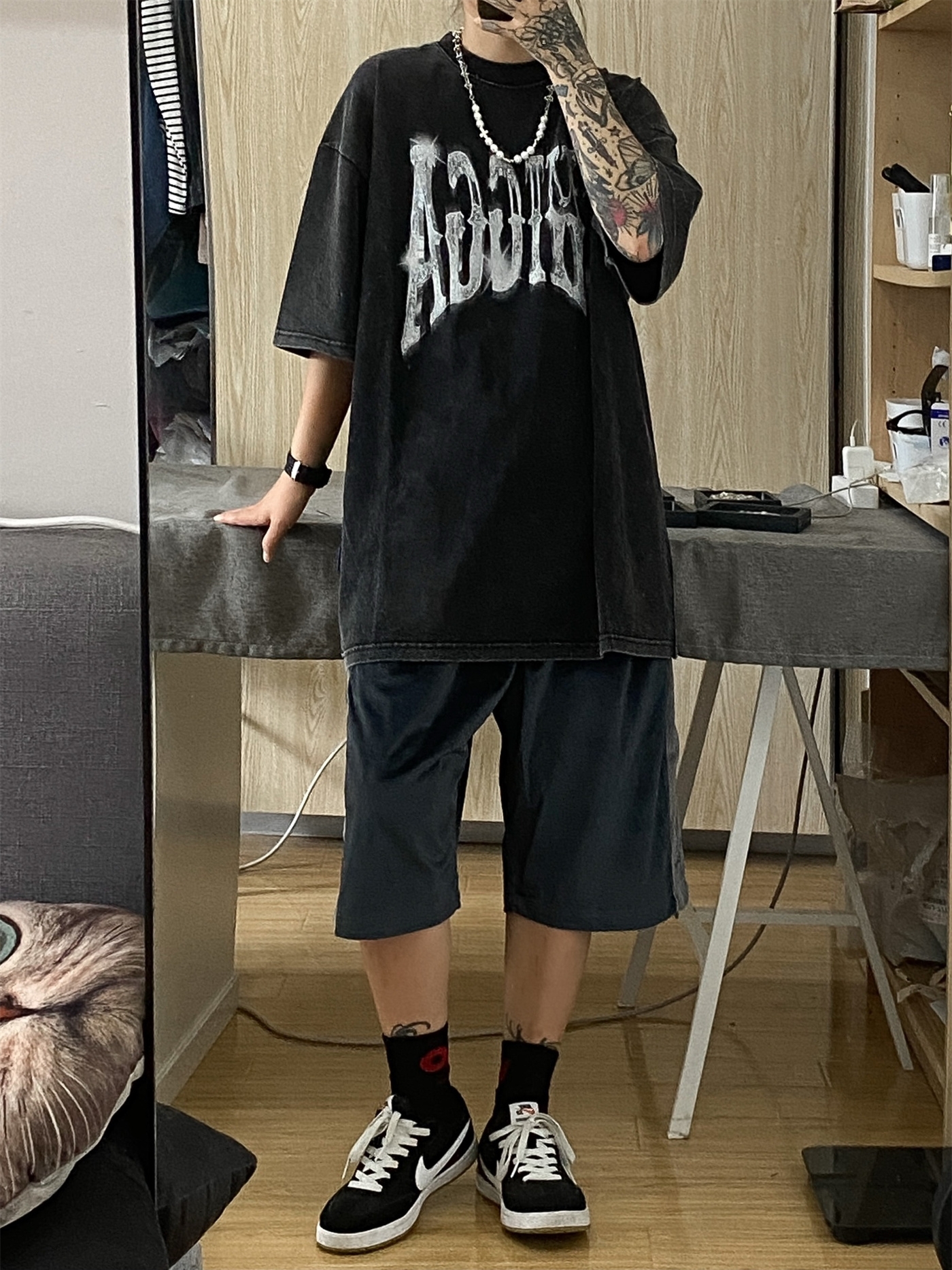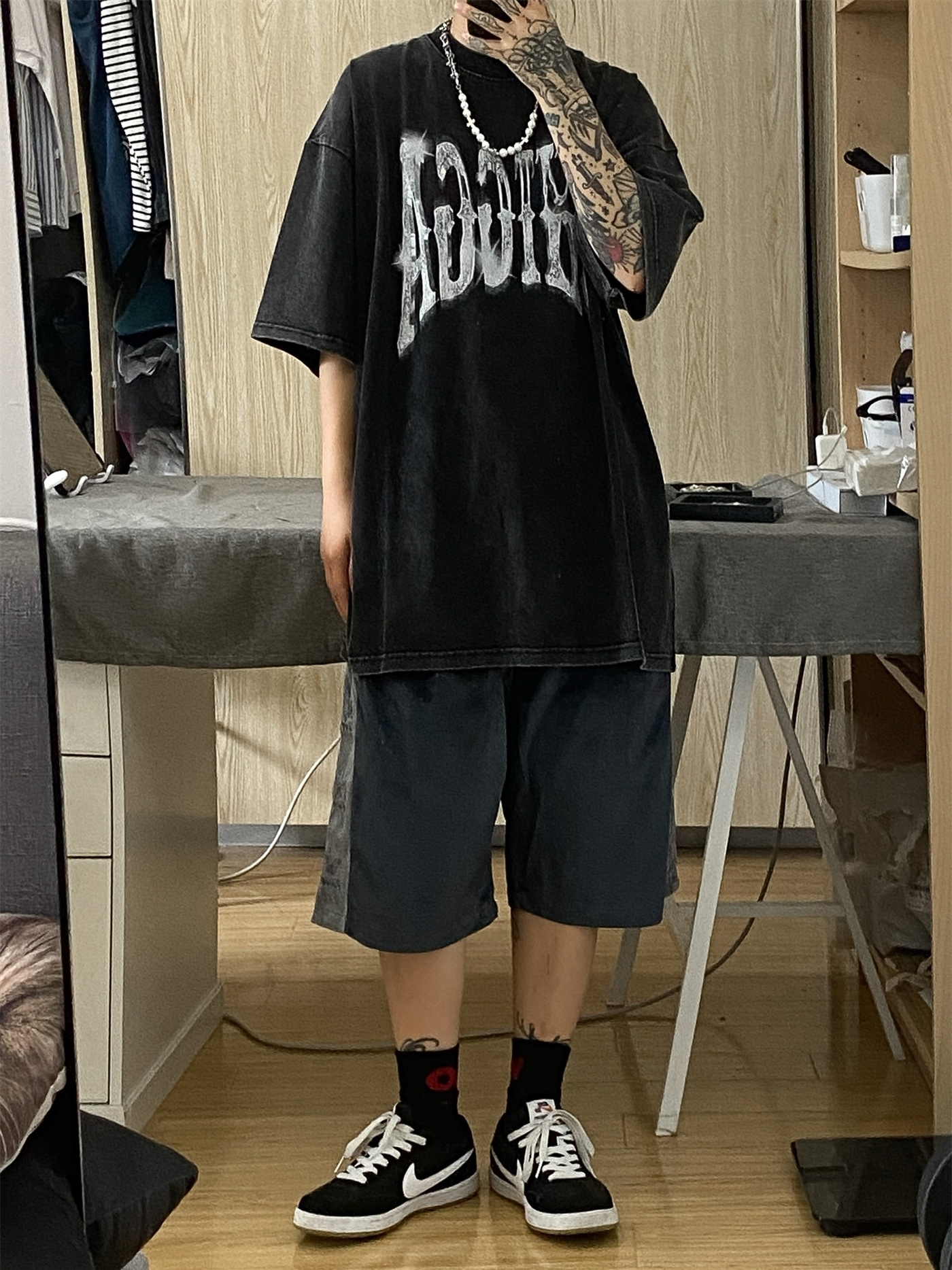 这款t恤是简约的风格,宽松的版型,时尚百搭,胸前的字母印花,很有个性,搭配牛仔裤或者短裤都很好看。