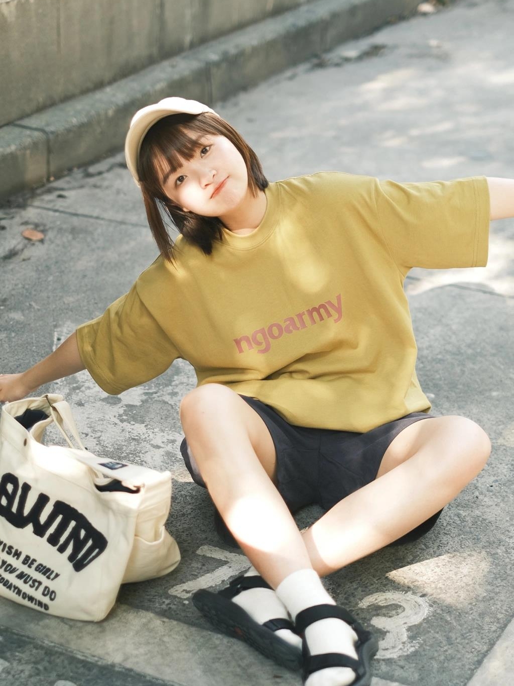 这款t恤是简约的风格,宽松的版型,时尚百搭,胸前的字母印花,很有个性,搭配牛仔裤或者短裤都很好看。