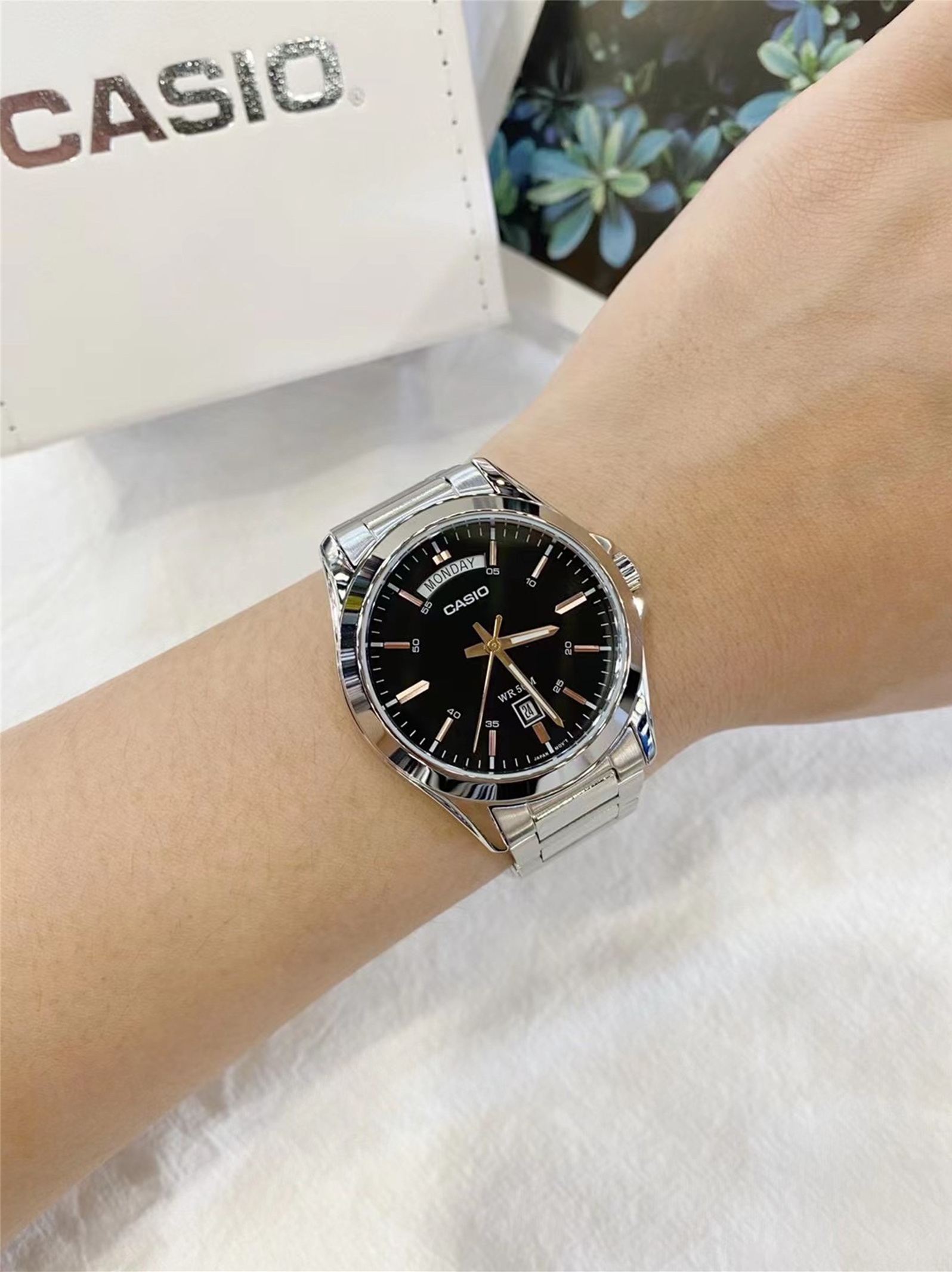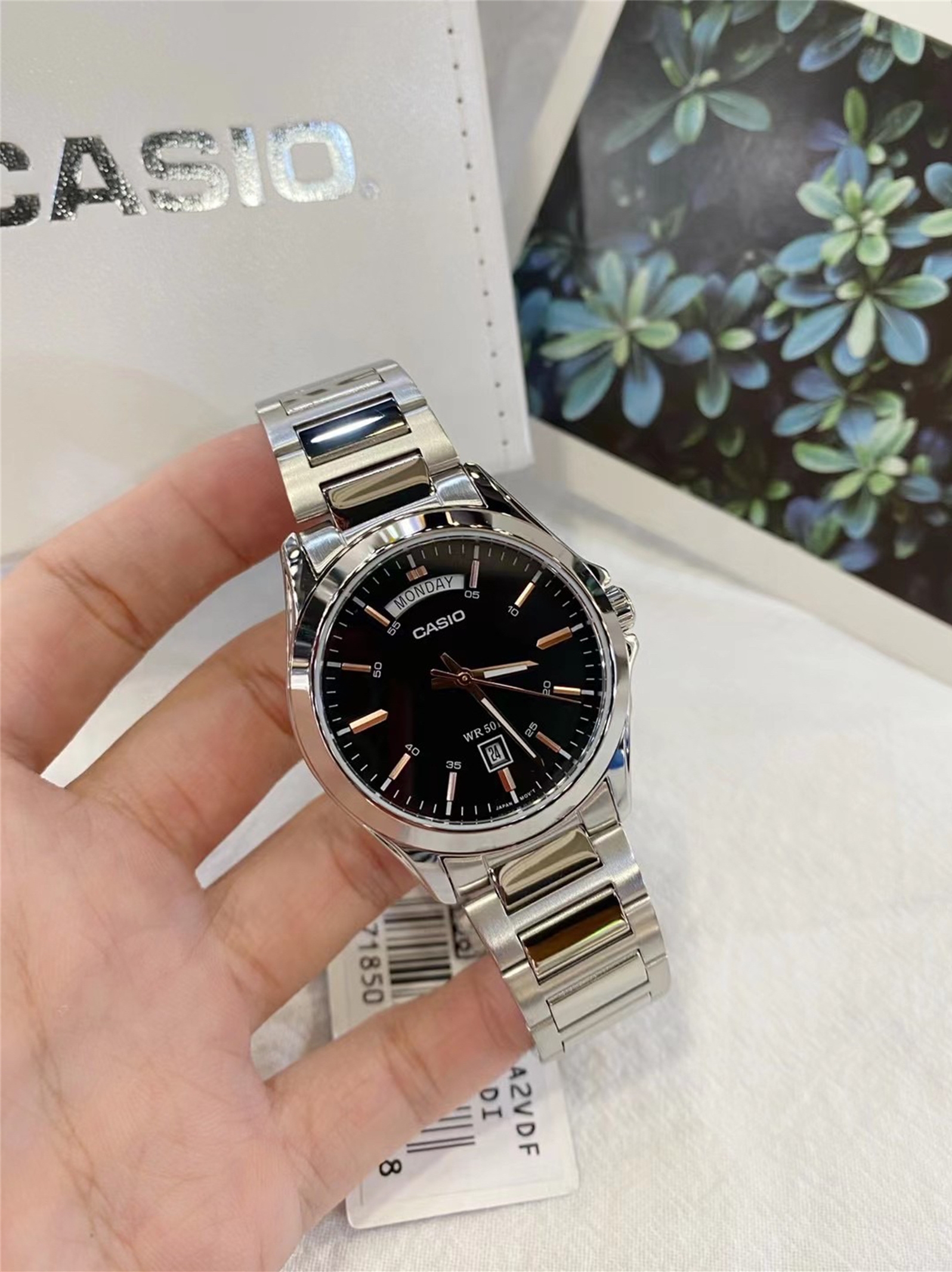 平时就带着卡西欧的手表,这款卡西欧做活动购买的价格挺划算的,大指针和大刻度,清晰读时。酷黑底色,清新的白色和活跃的橘色营造出