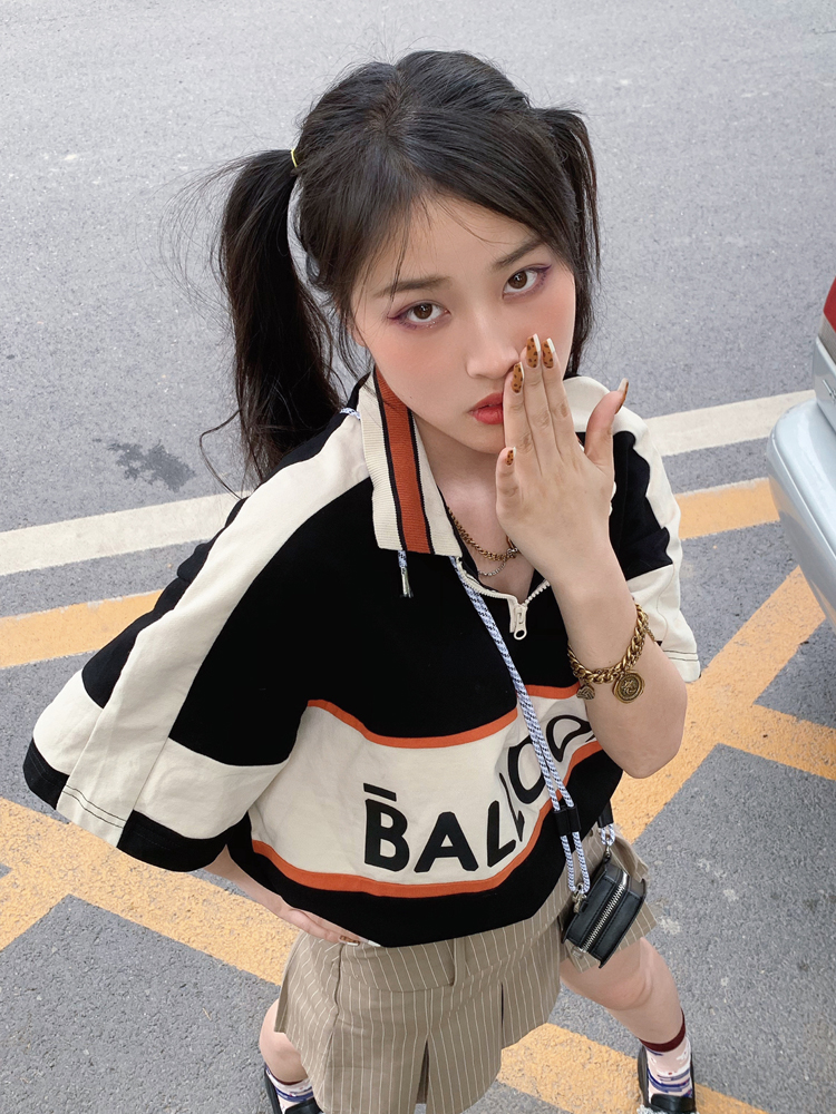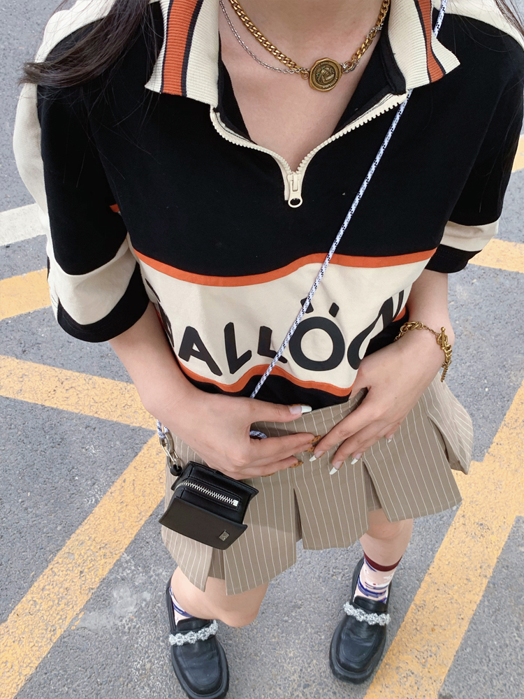 这款POLO衫的设计十分的美式复古。衣身采用拼色的处理设计,营造出清新明媚的学院风格。结合撞色的大字母印花,更加的时尚大方。