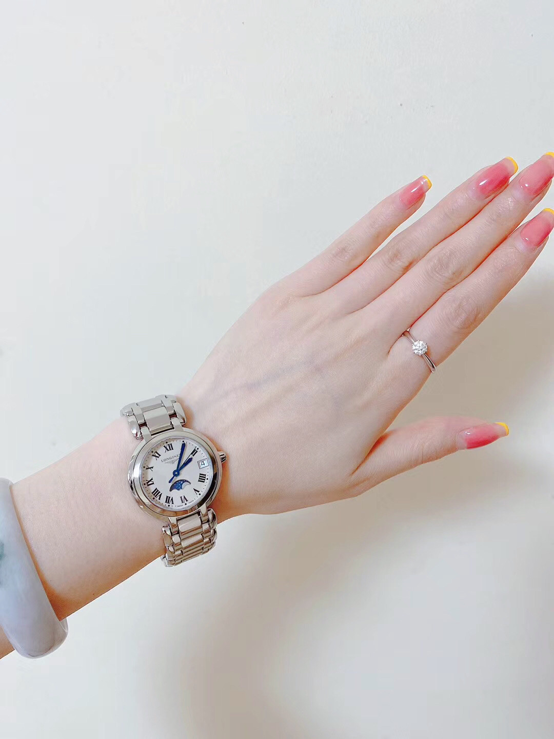 我对这款腕表可以情有独钟,从去年在专柜看到了以后,就一直心心念念,知道情人节老公给我买了,本来还想买大表盘的,但老公说女人嘛戴小一些的看起来秀气,而且小表盘的腕表显得手腕更纤细