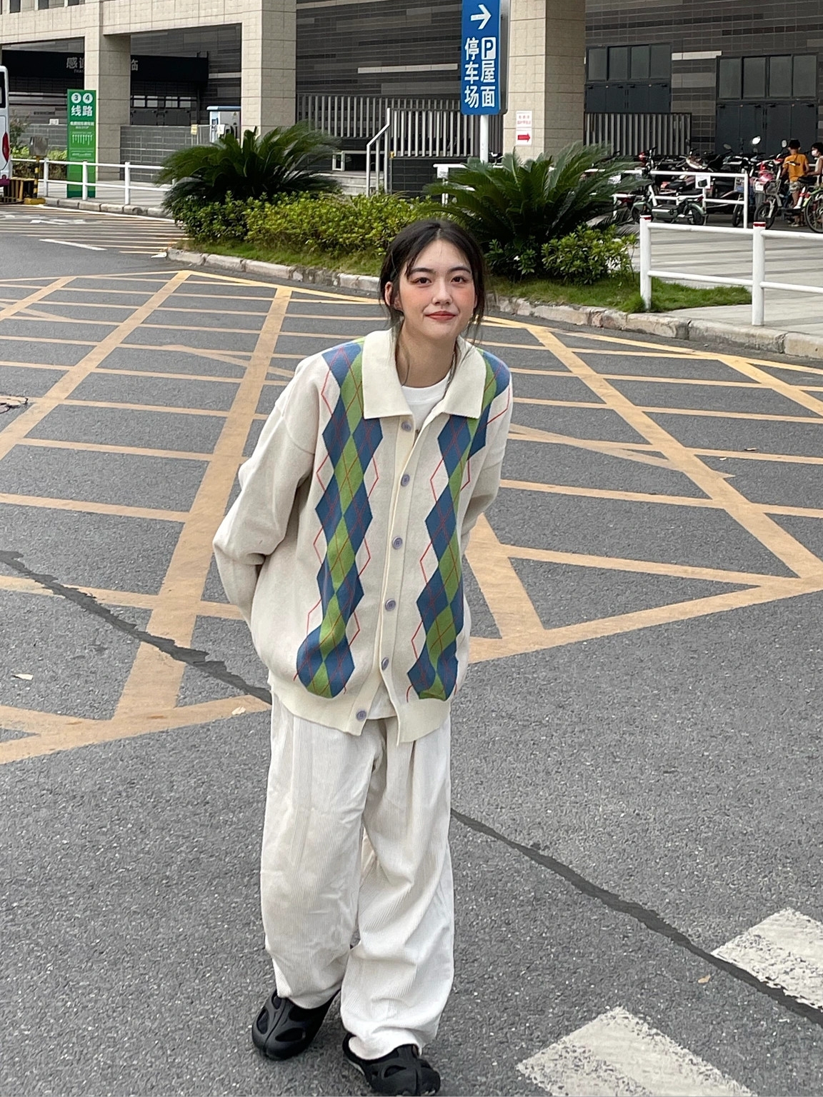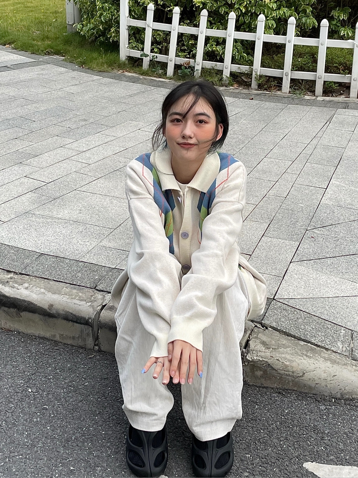 为菱格心动一万次,衣服穿起来超韩系,衣服有学院的feel看起来乖乖的,一穿上就有一种温温柔柔的感觉,很喜欢。