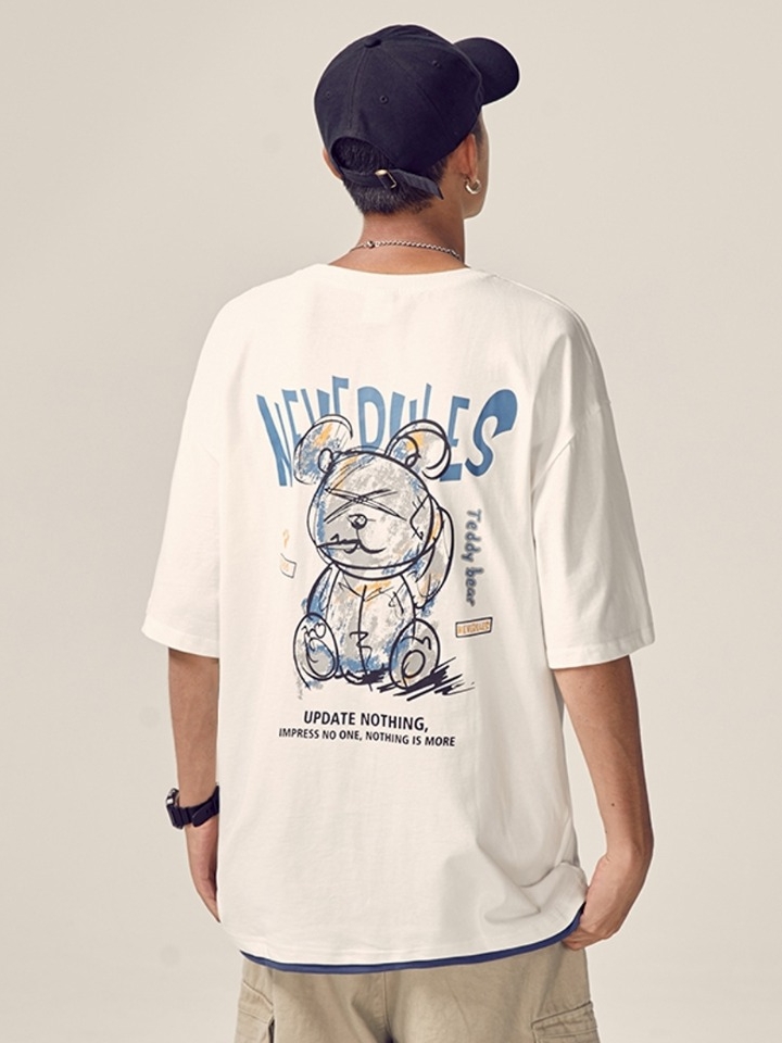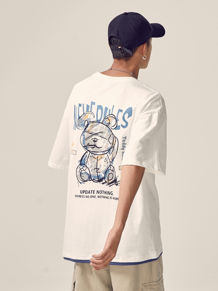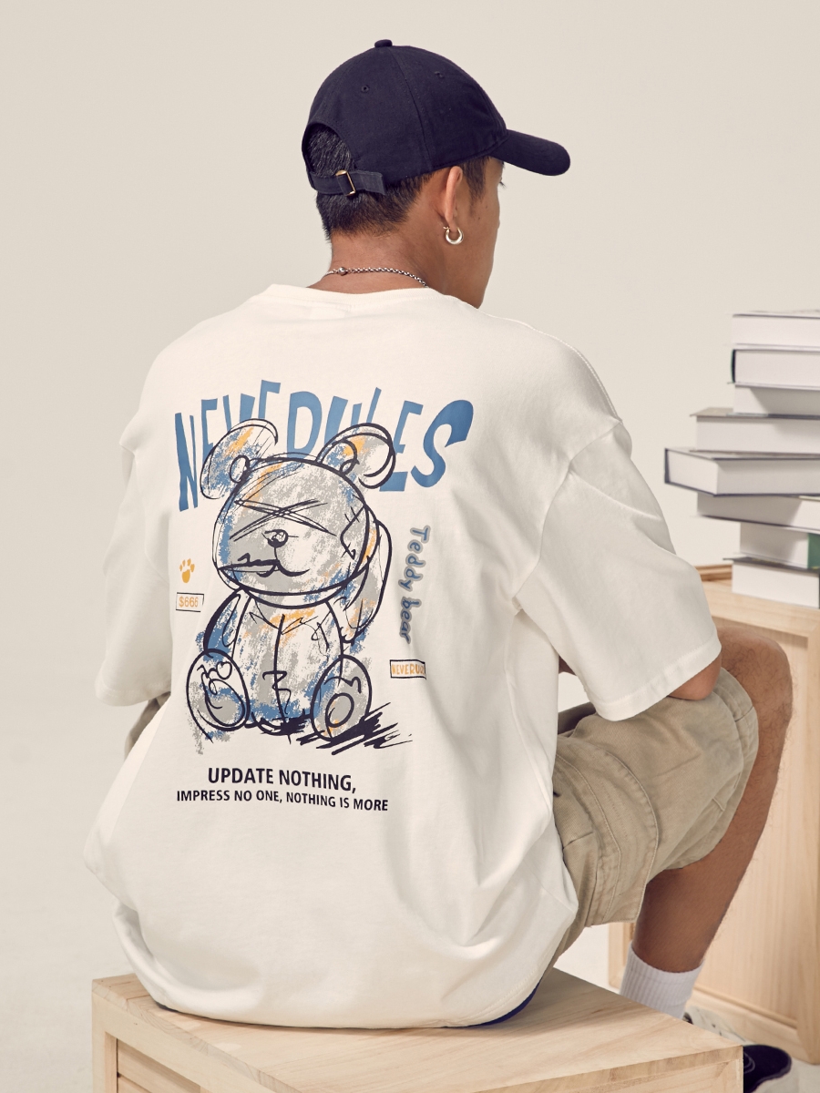 精选面料亲肤柔软,透气舒适。胸前的可爱的玩具熊印花设计,个性十足,提升衣服的时尚感。宽松的版型设计,上身宽松休闲,为你的衣着增添时髦个性范。