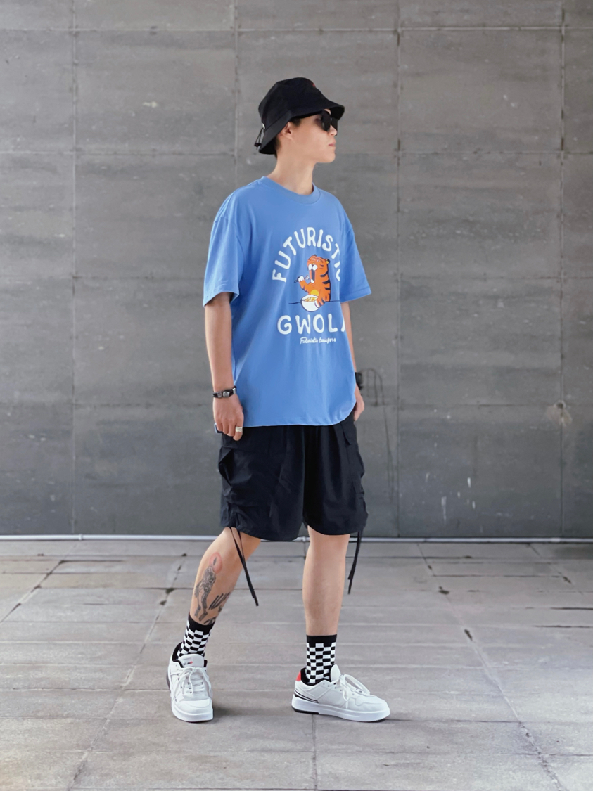 充满了工装风的一款短裤,显得特别休闲,同时也让行动更加自如,版型宽松的短裤加入了抽绳设计,既休闲又有时尚范。