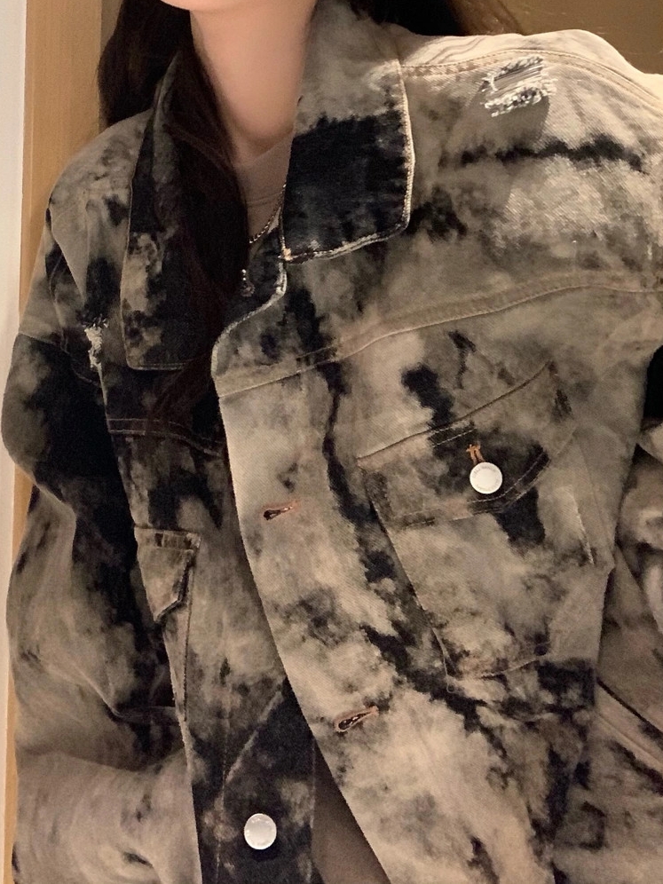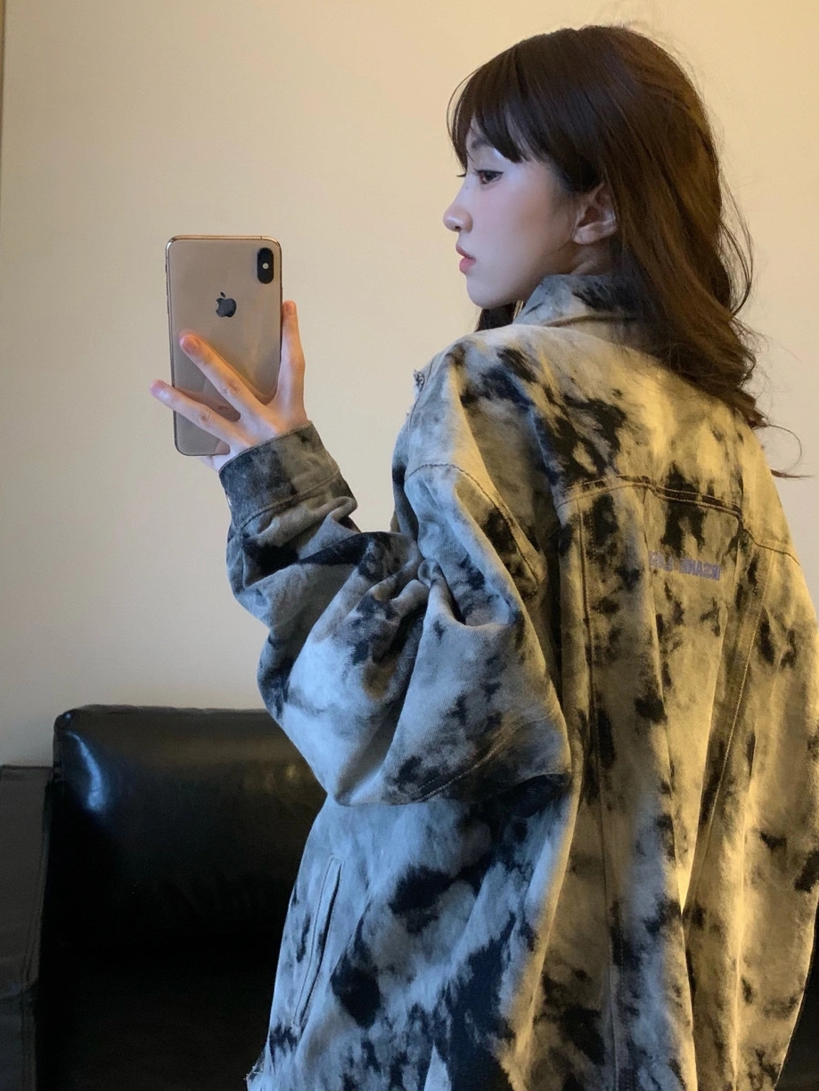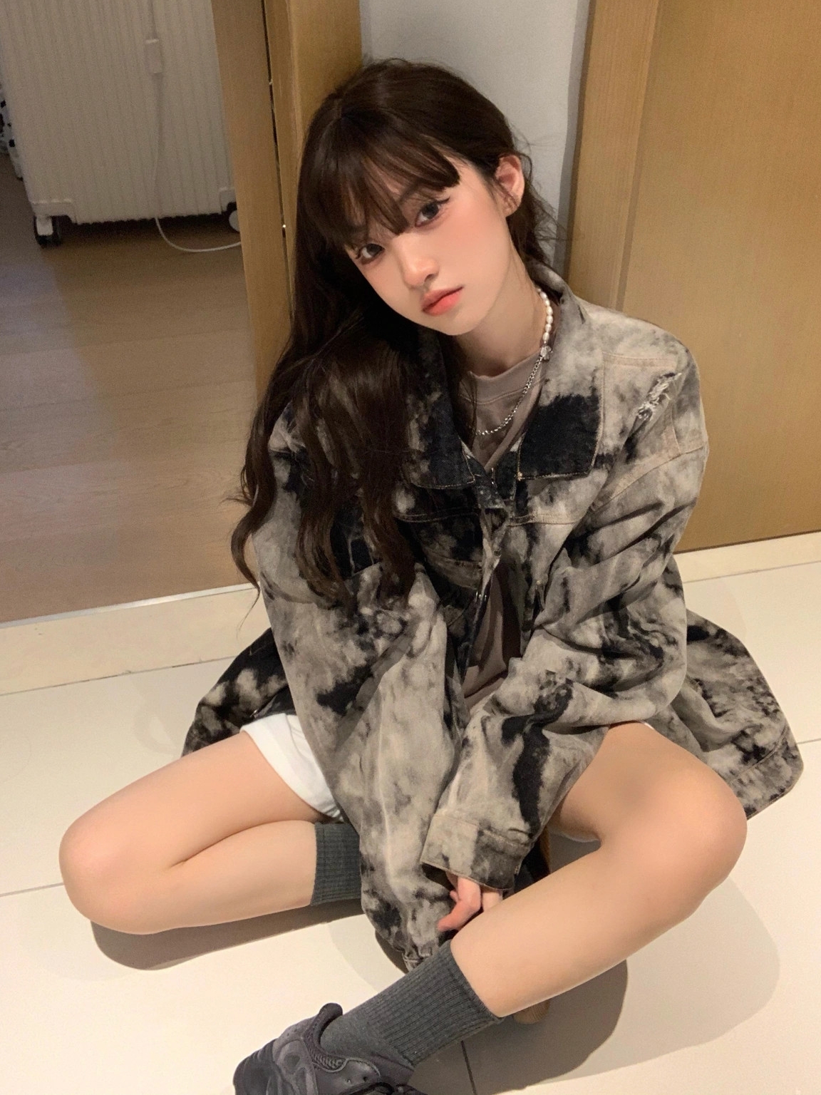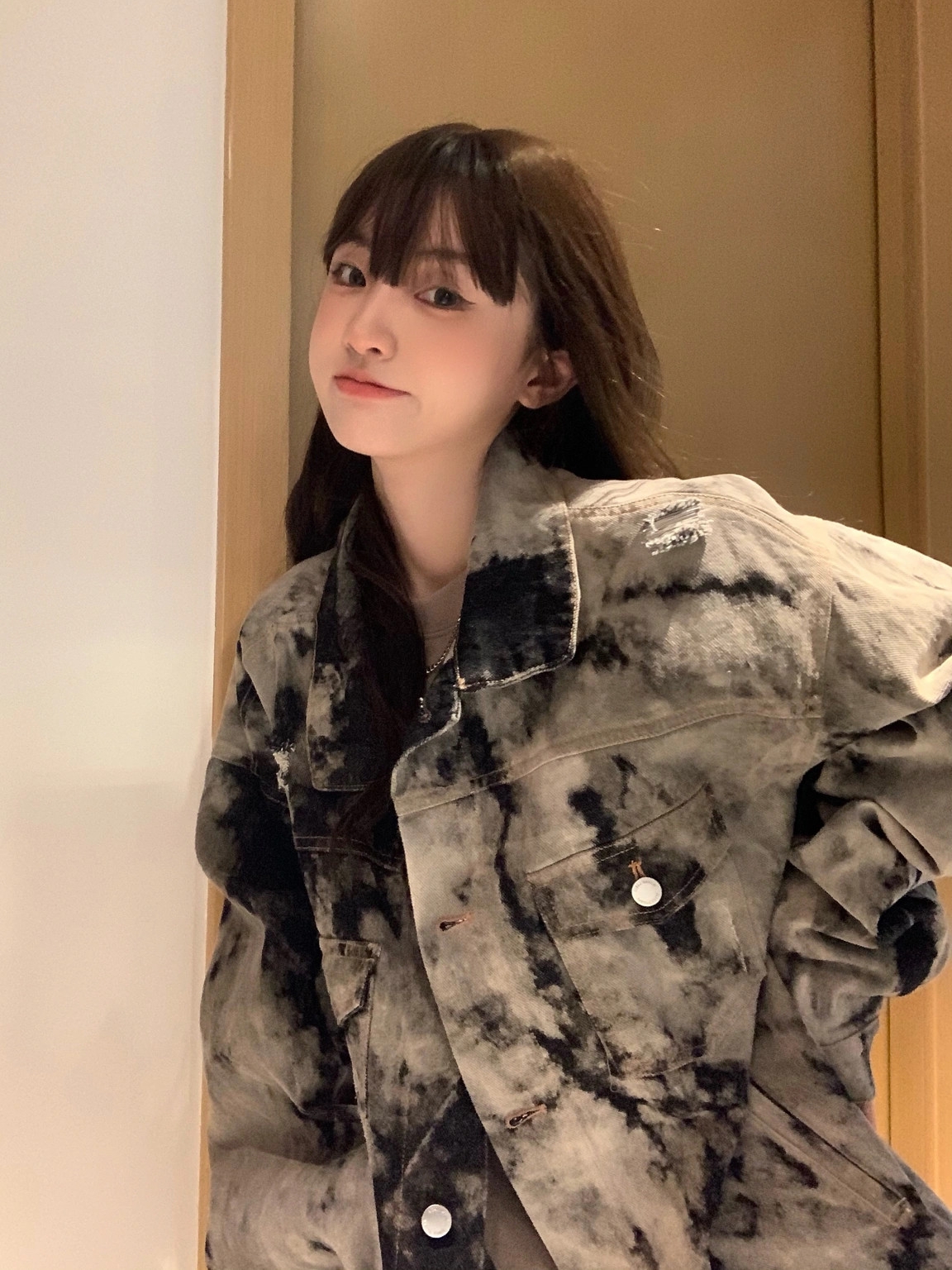 牛仔外套的颜色晕染很特别,有一点复古,又有一点酷酷的感觉,版型设计得很好,对小个子女生也很友好