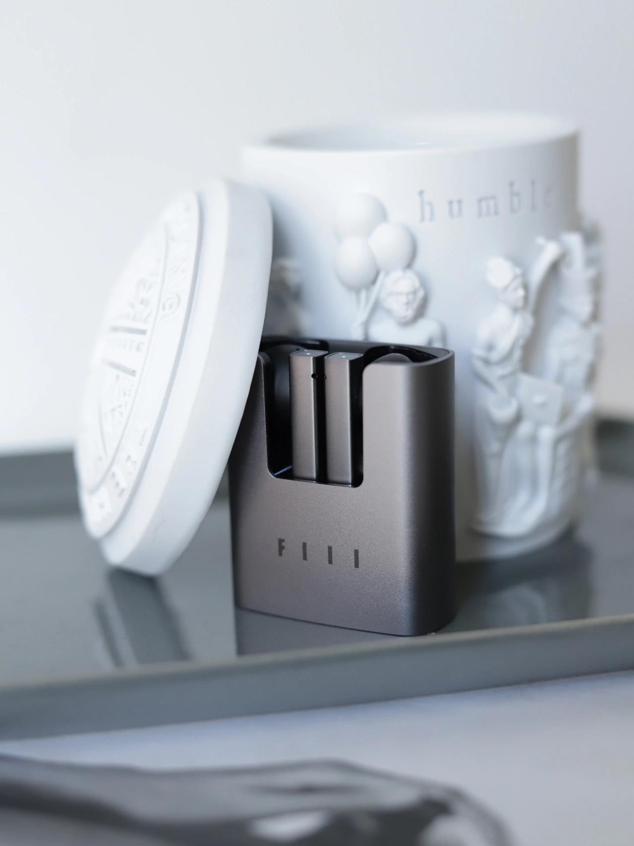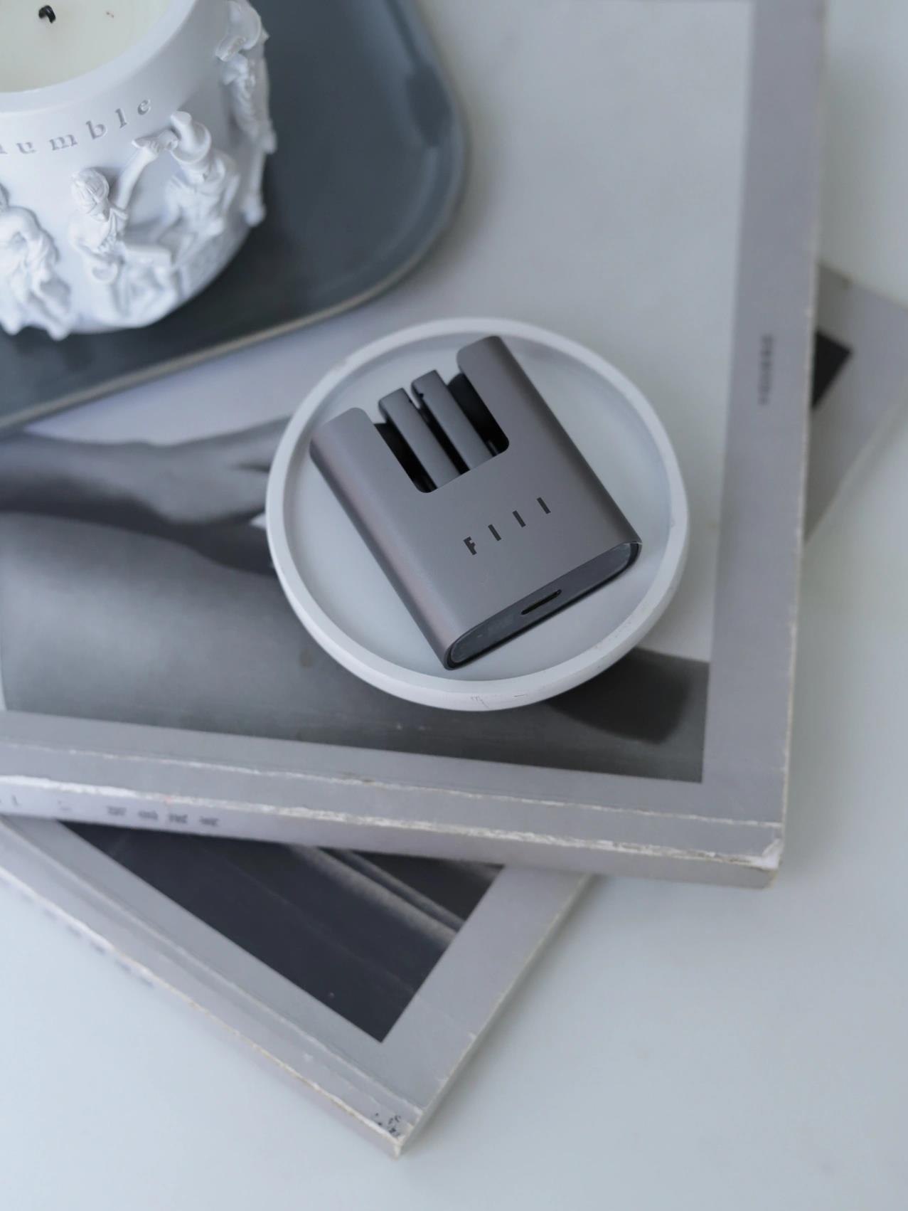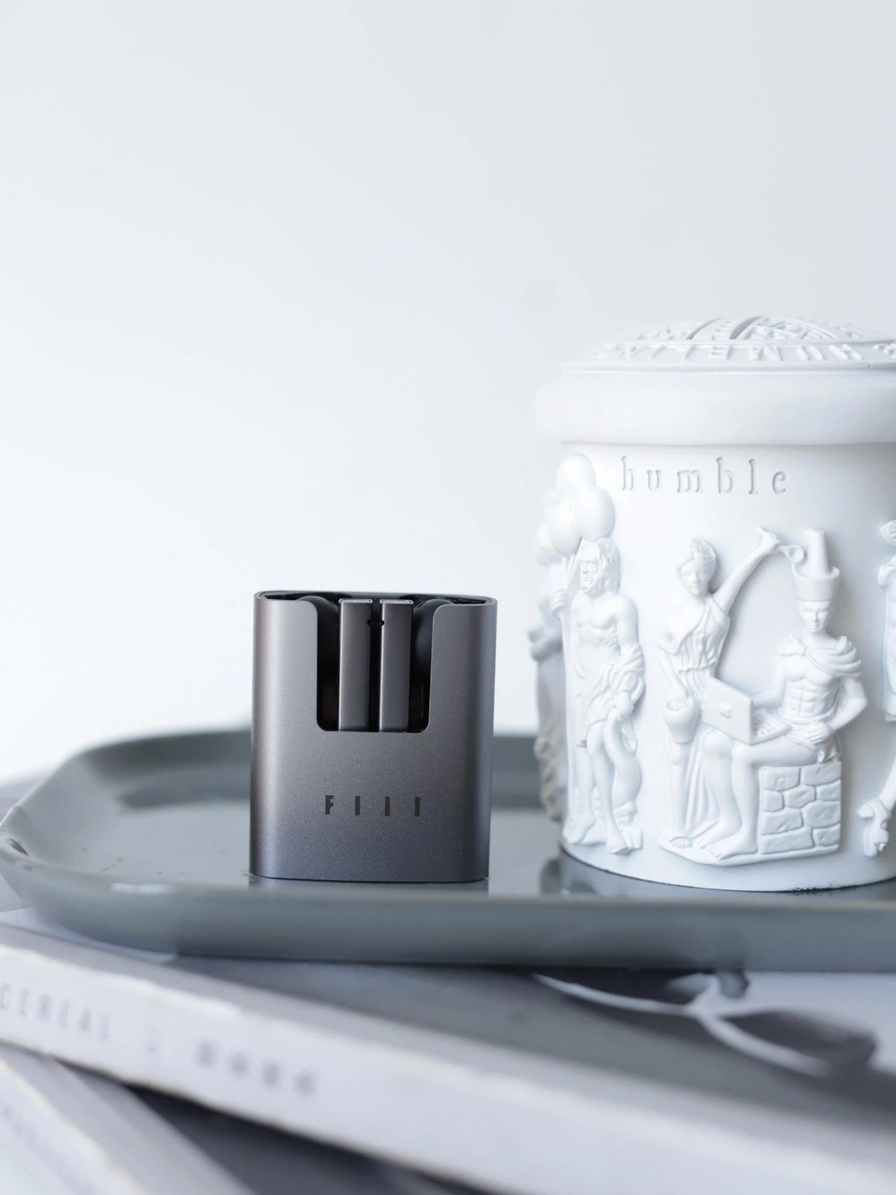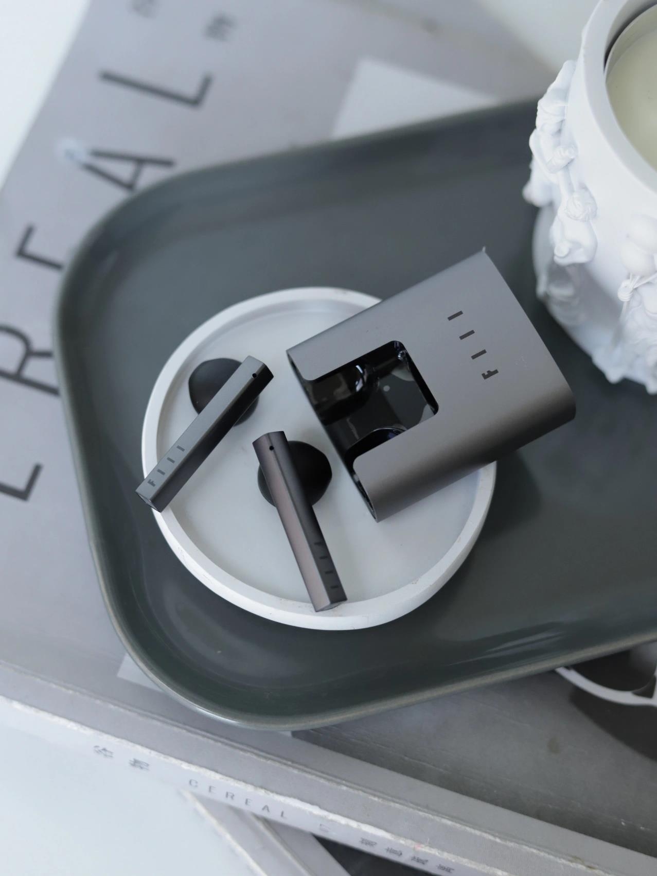 这款耳机与普通我们用到的耳机样式都不太一样,方形的外壳,看起来非常大气美观,在底部有充电量的显示,颜色有灰色和黑色。