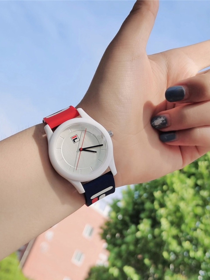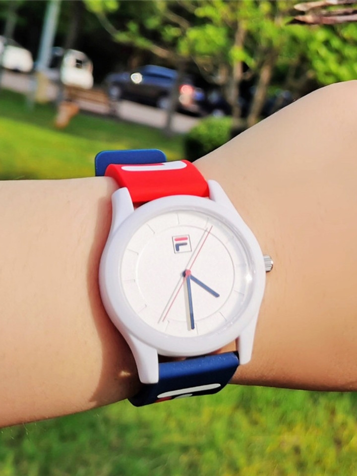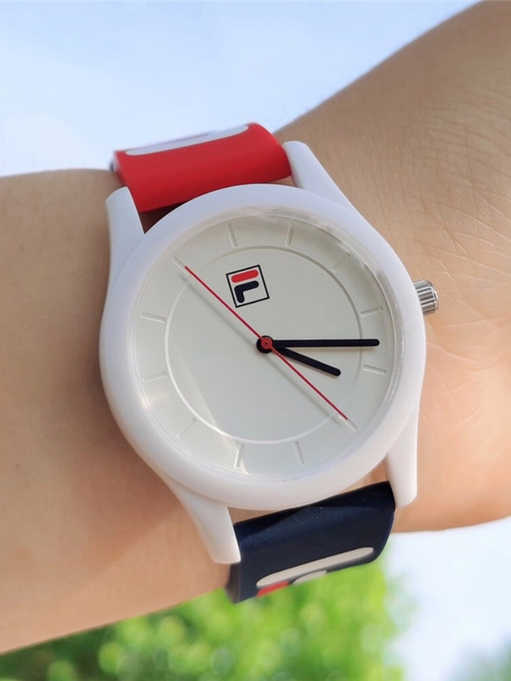 意大利百年时尚品牌Fila/斐乐出品的这款休闲石英手表,以运动为灵感来源,红蓝的配色,彰显青春活力;硅胶材质的表带,耐磨舒适。