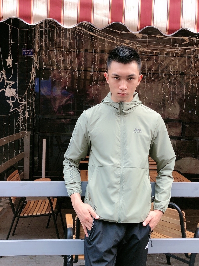 选用优质锦纶材质,防泼水处理,超柔亲肤,透气舒适,有效预防紫外线,连帽设计,有效防风,衣身拼接设计,时尚大气,松紧袖口设计,穿着干练。