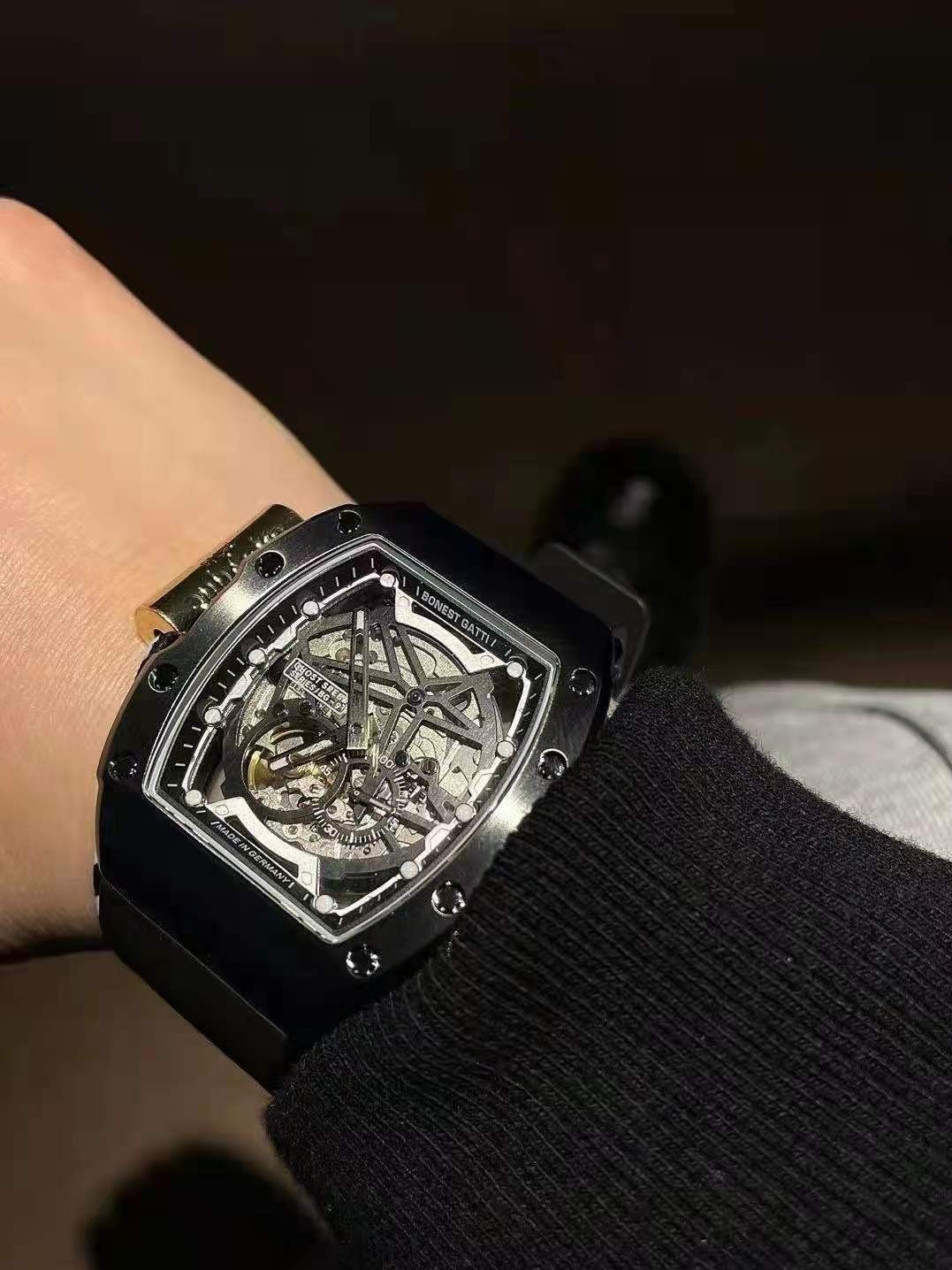 独特的镂空设计,透过飞轮和底盖可随时看到机芯的运动之美;采用蓝宝石耐磨镜面,防刮耐用性好;表带选用头层牛皮制作而成,佩戴柔软舒适透气。