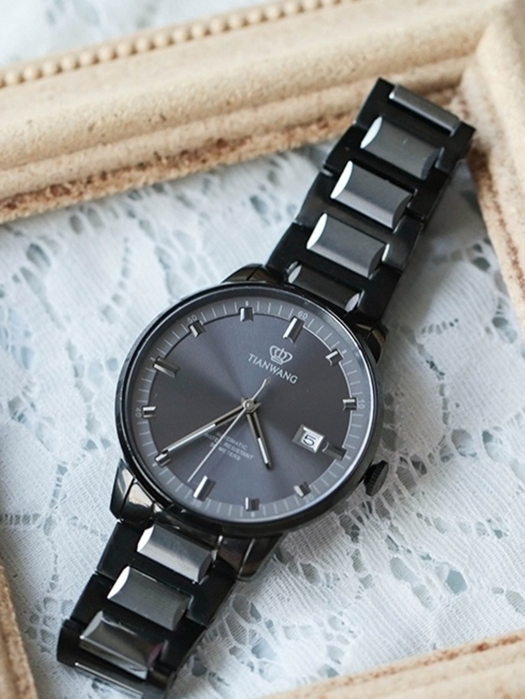 精钢表带贴合手腕,线条流畅版型简洁,精钢表壳绽放沉稳大气的质感,精钢表圈黑色表盘,黑白撞色对比强烈,生活防水,日历指示,进口机械机芯功能强大,表带单手即可开合实用性更强。