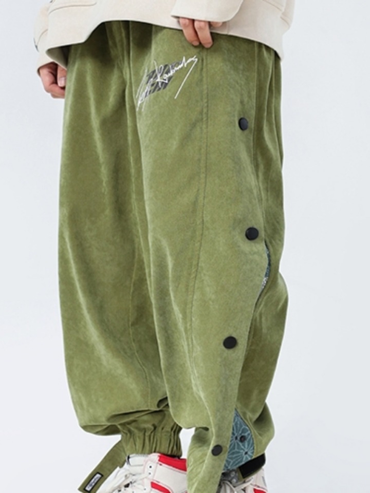 将织带从裤脚一直延伸到侧边,弥漫运动休闲风的气息。腰部采用魔术贴的设计,透露运动风气质,增添整体的潮流气质。膝盖处叠加绣标的设计,细节之处彰显个性。