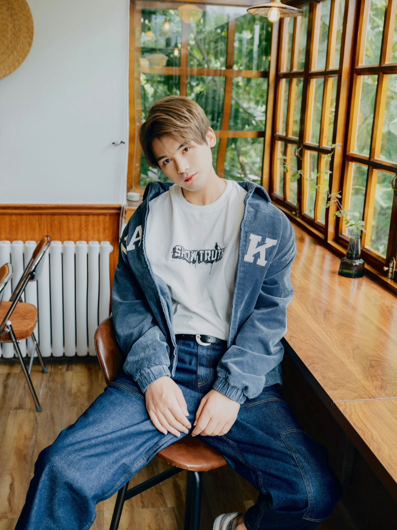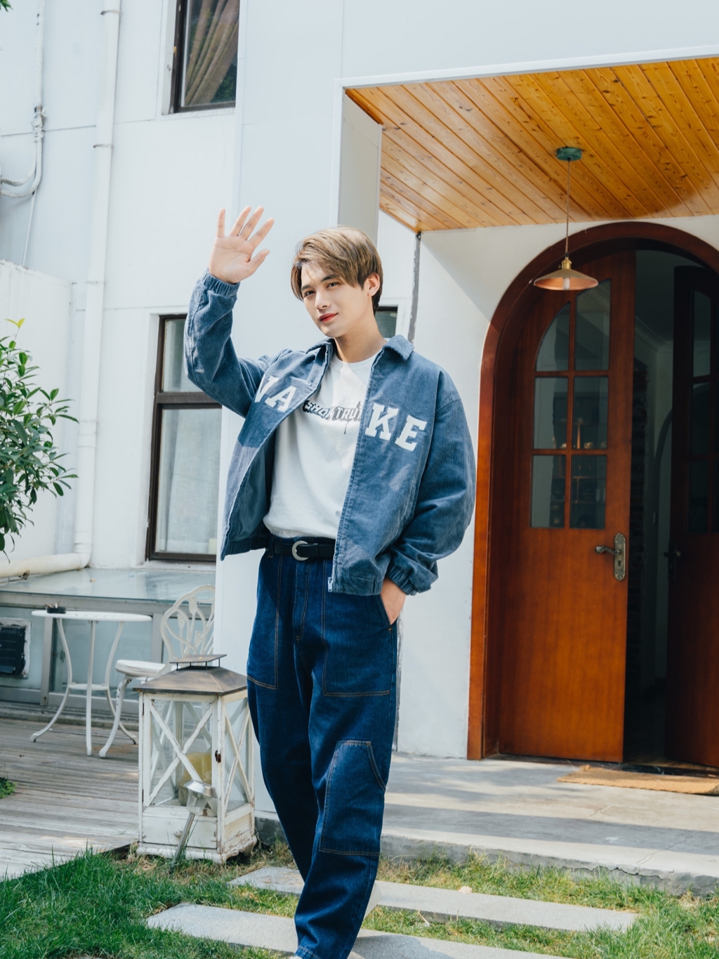 内搭随便选择一件万能白T 再搭一条深蓝工装休闲牛仔裤.