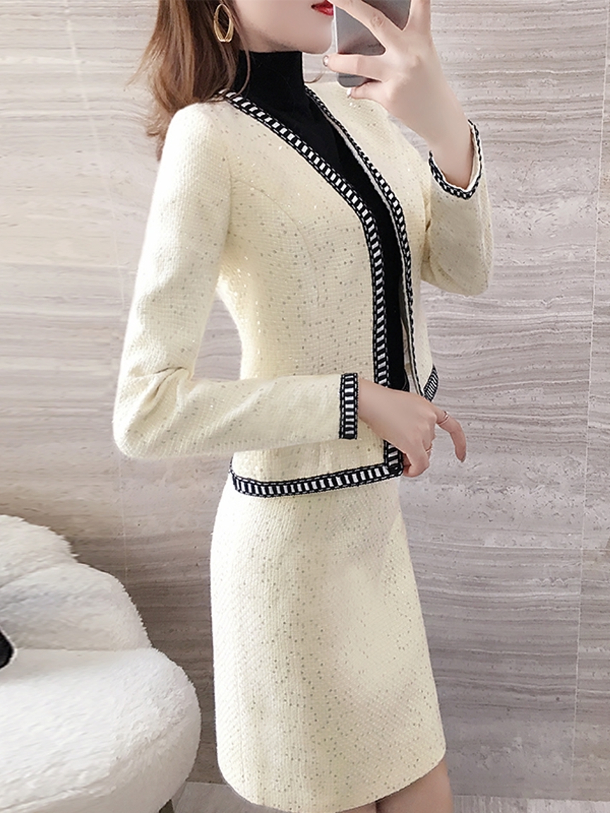 非常有版型的一款套装,上身效果非常赞,起伏摇曳的波浪边最能衬托女性的浪漫优雅气质,波浪边下露出您的性感小蛮腰