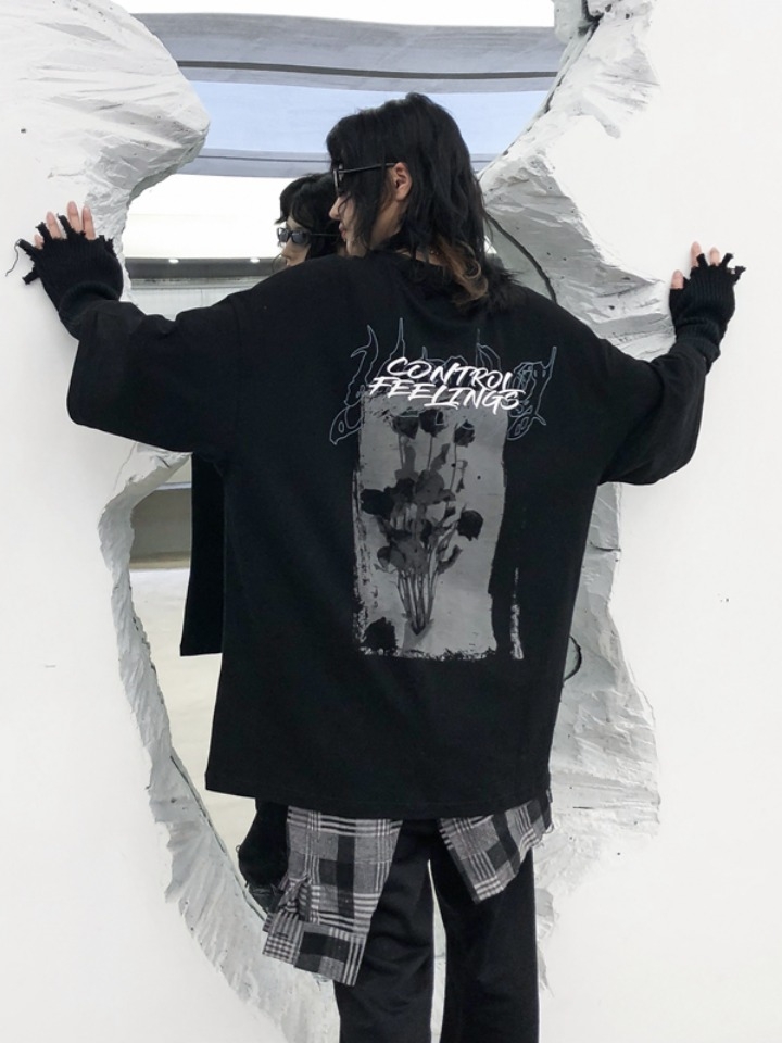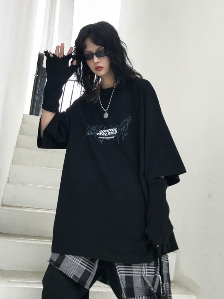 朋克、高街风圆领T恤,街头感强,男女同款,涂鸦风格撞色图案印花,面料手感比较好,适合春夏穿着