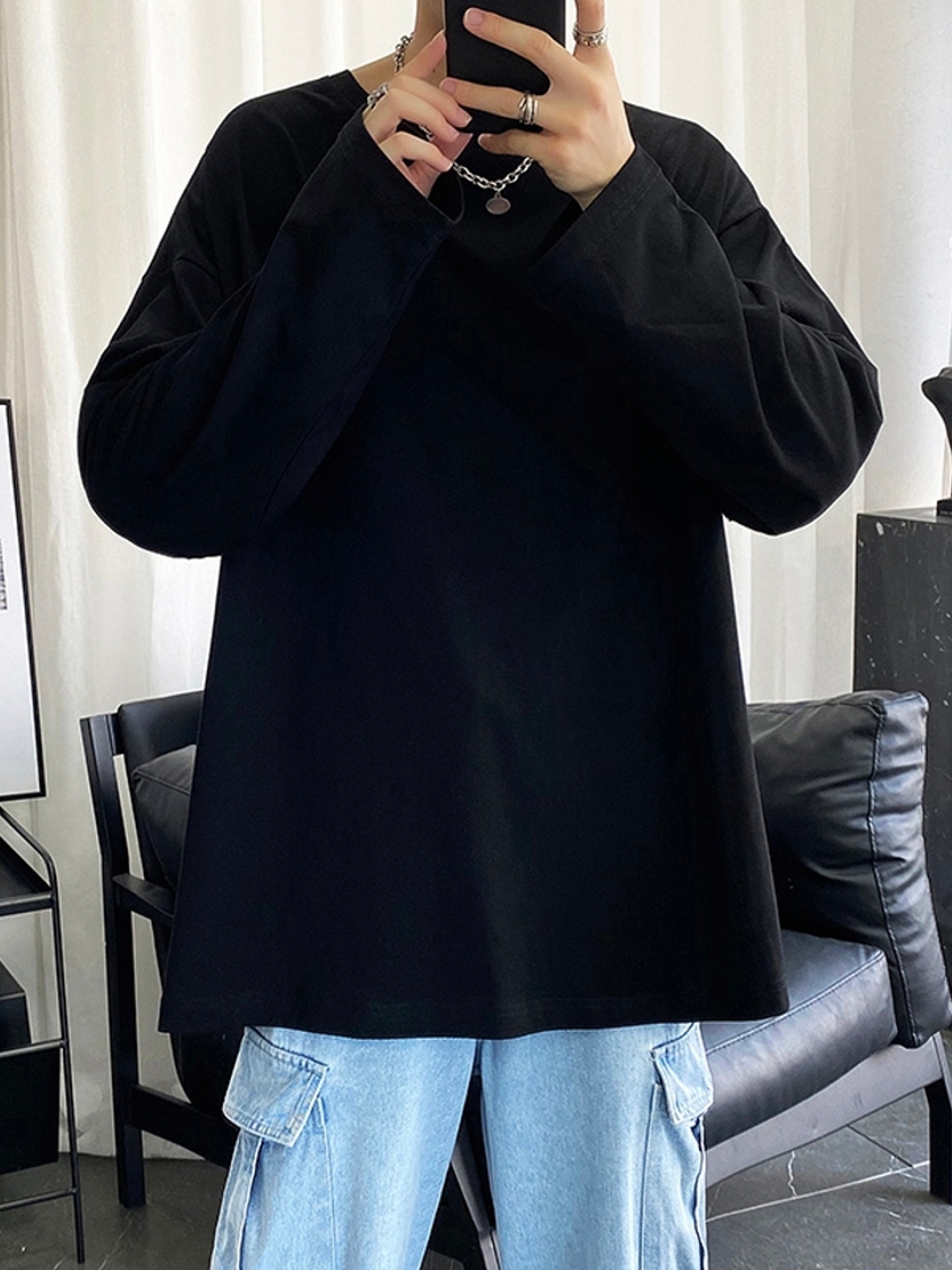 有英伦风设计感的一款T恤,肩部延伸出来的插肩袖的款型,让设计更显灵动,避免单一感,下摆的不规则的剪裁,也在平凡的设计之中凸显出个性。